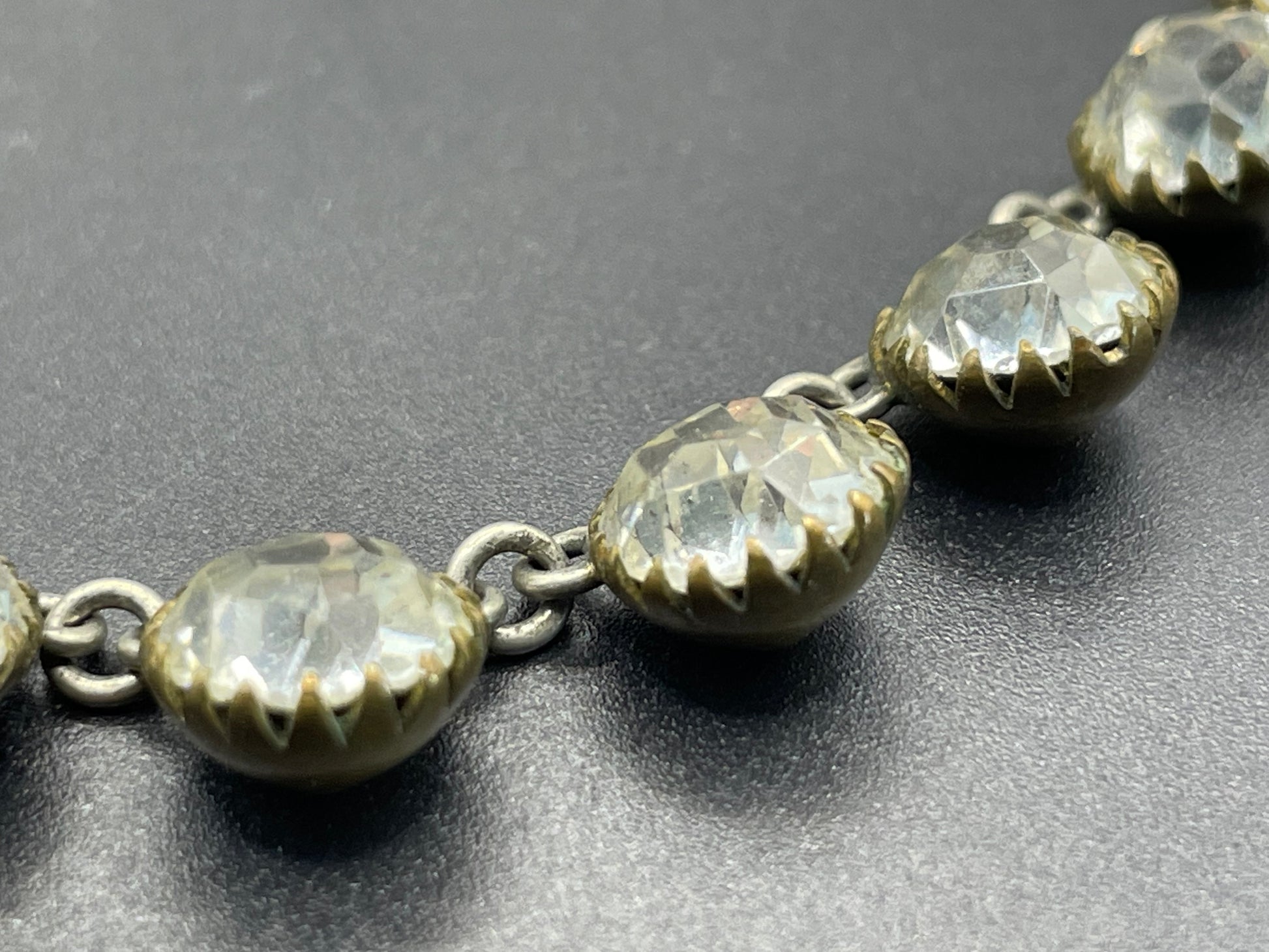 Antique 19th Century post-Georgian Victorian paste riviere necklace, closed cup settings, beautiful foiled rhinestones, gilt metal