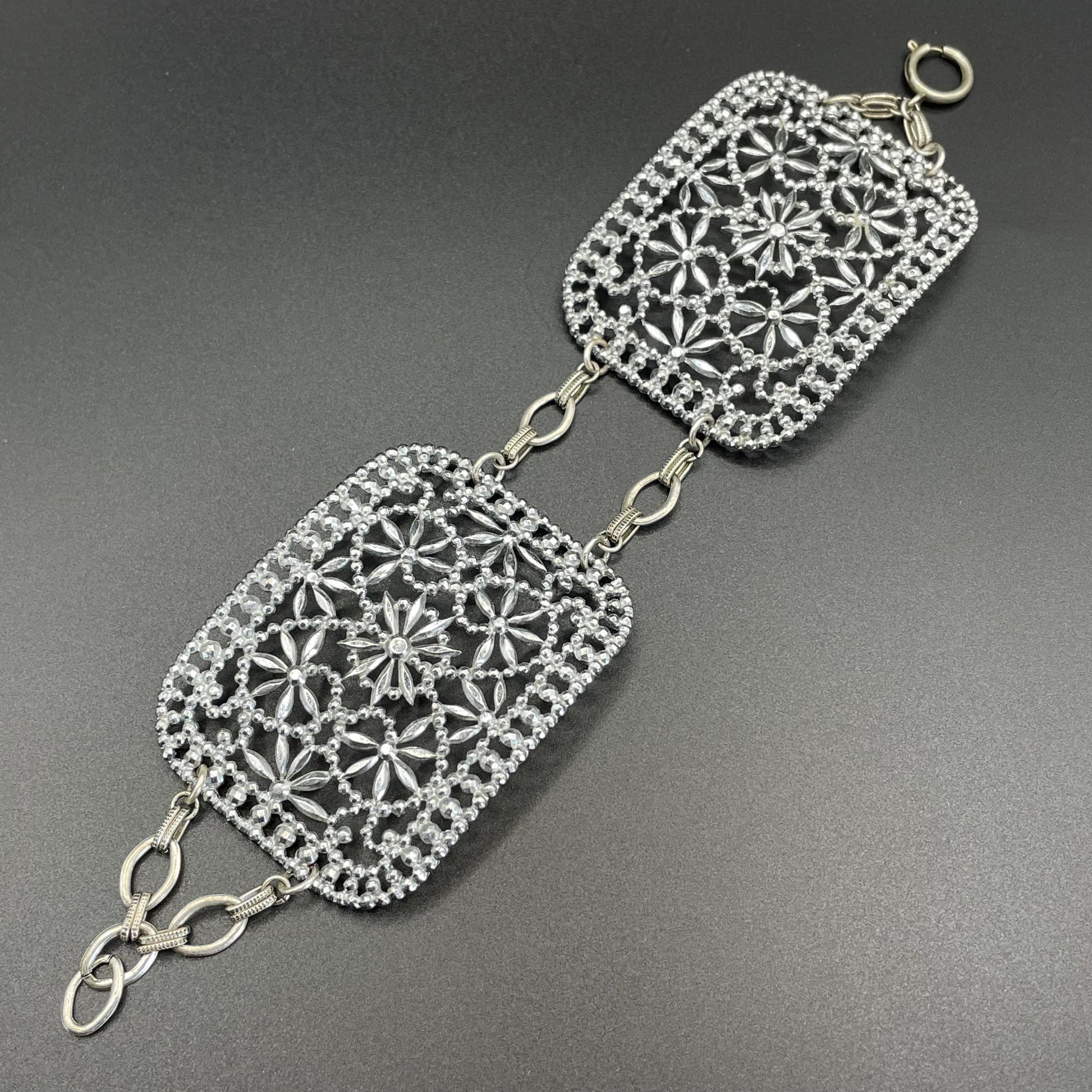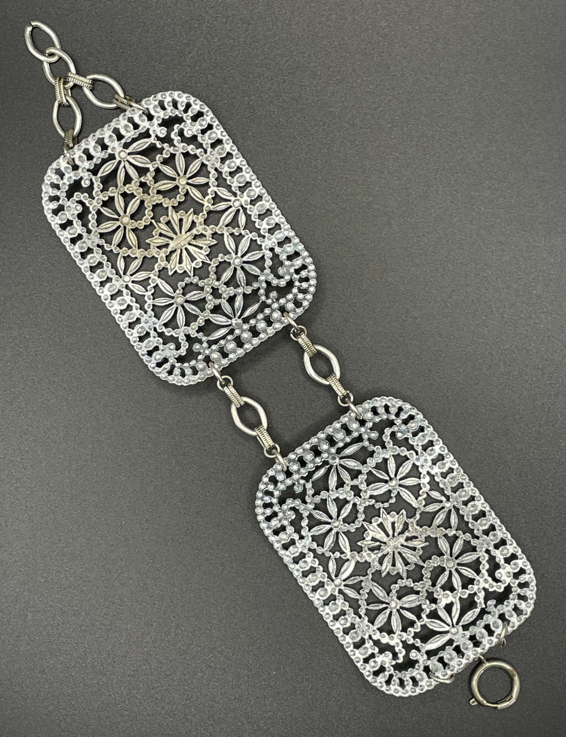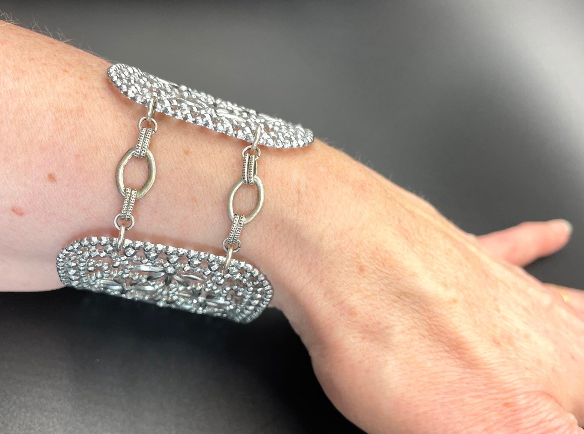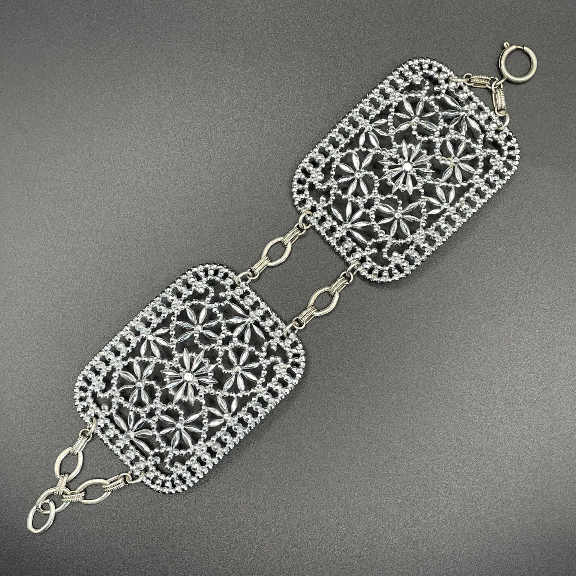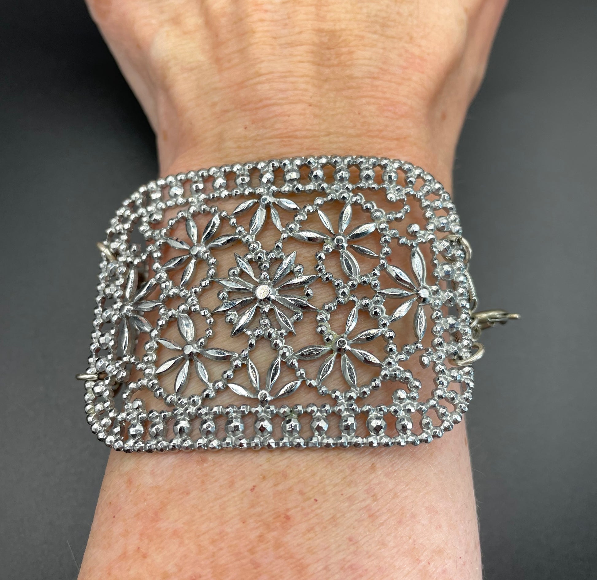 Antique Georgian to Victorian faceted cut steel double panel bracelet, rectangular shaped panels, beautifully ornate, sparkly piece