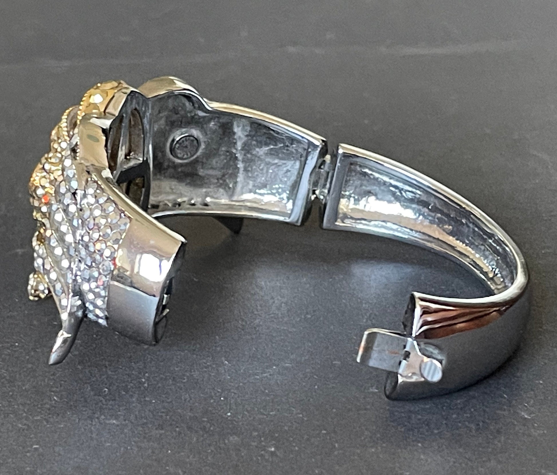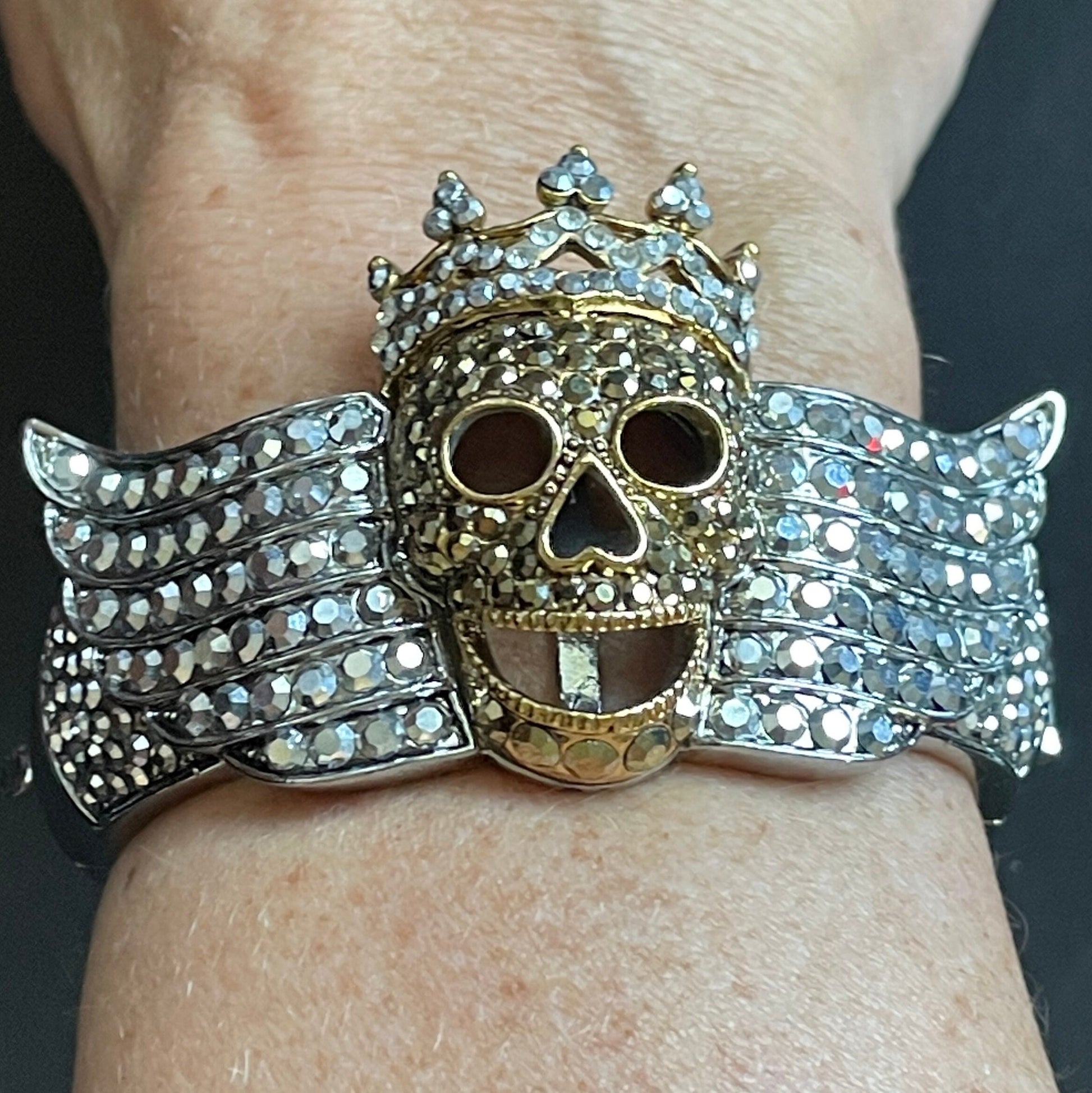 Huge vintage Butler and Wilson (B&W) signed winged skull with crown metallic rhinestone clamper bangle bracelet