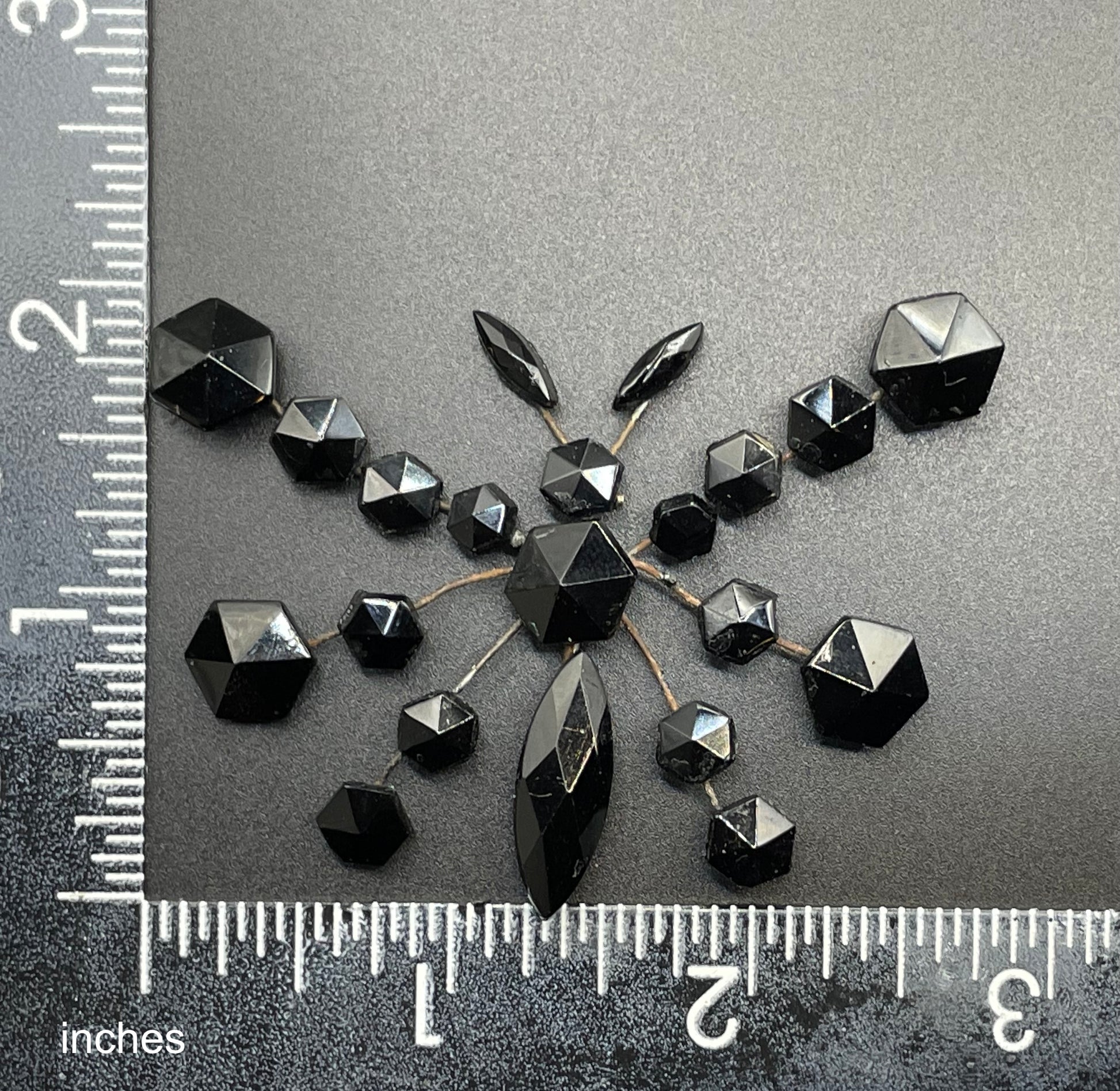 Large antique French jet butterfly brooch - Victorian Vauxhall glass, black faceted glass jet rhinestones