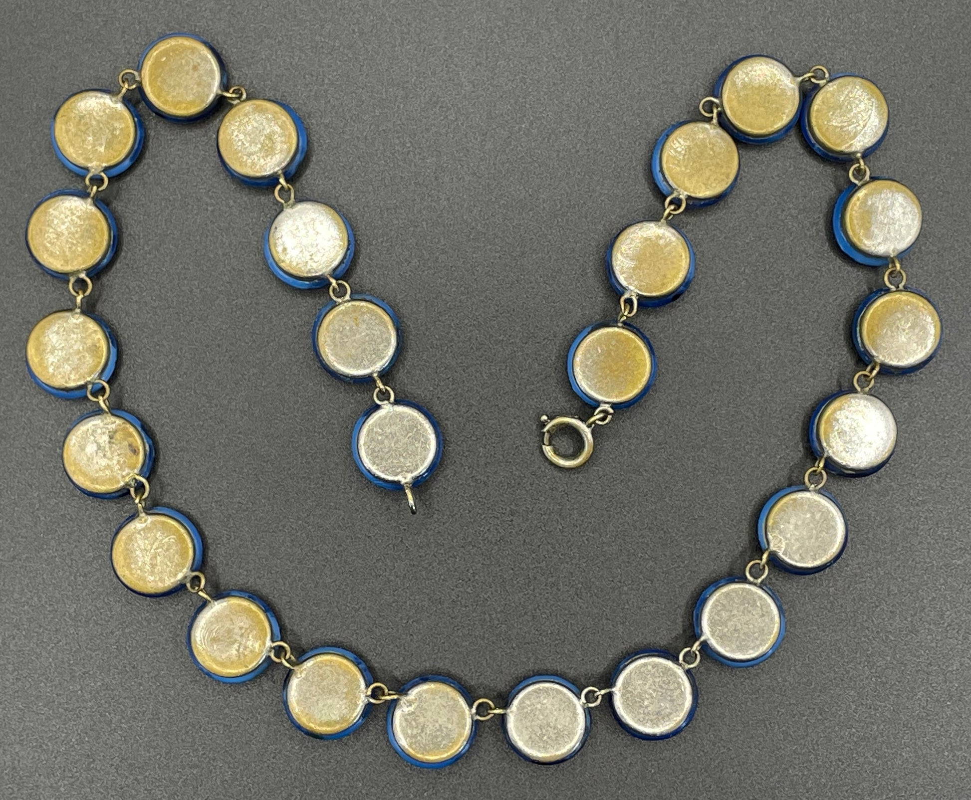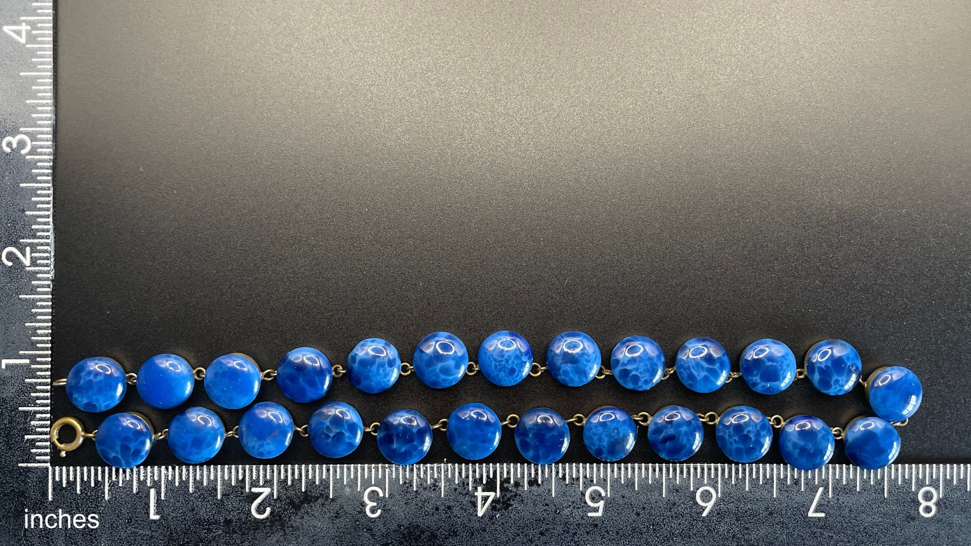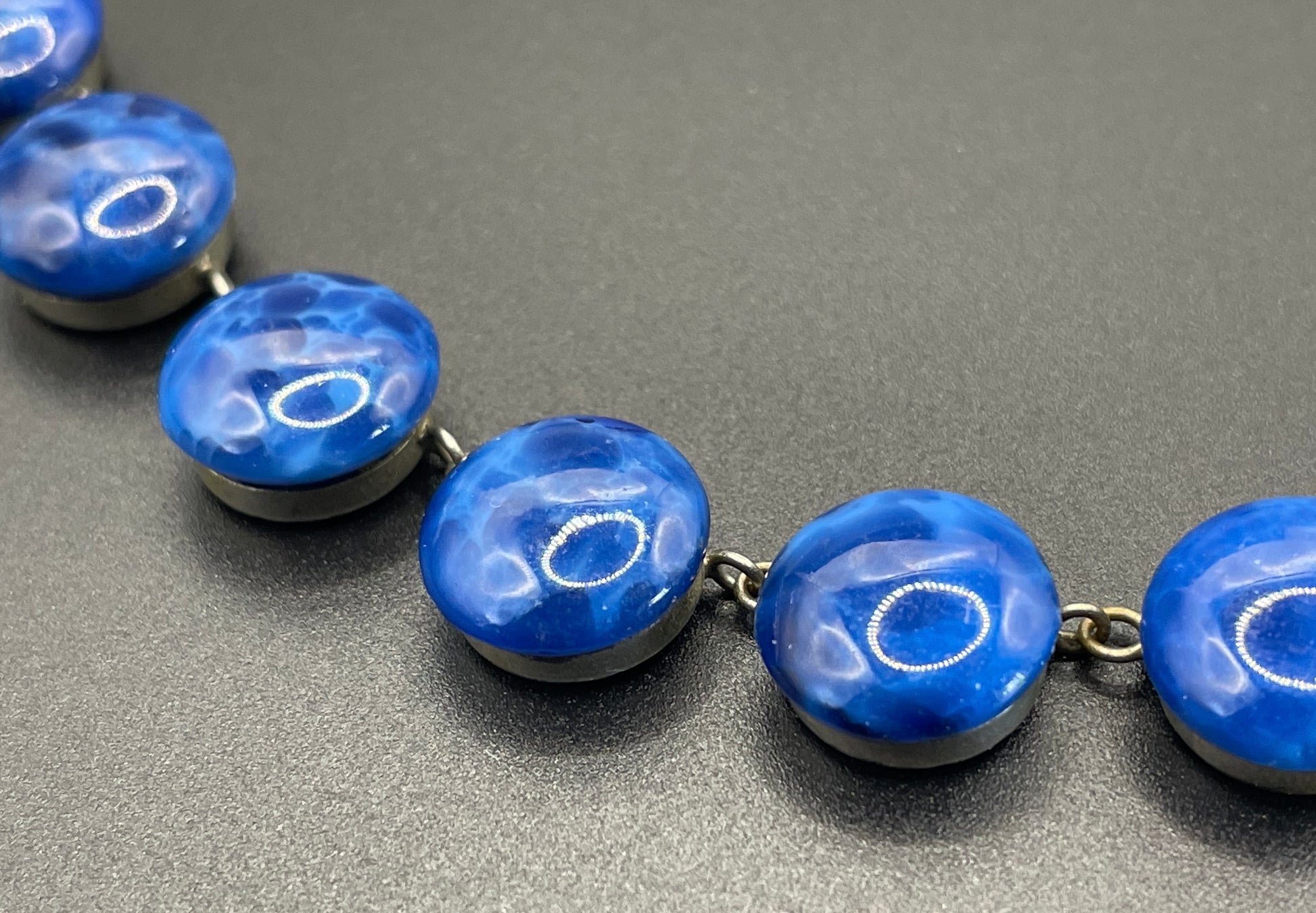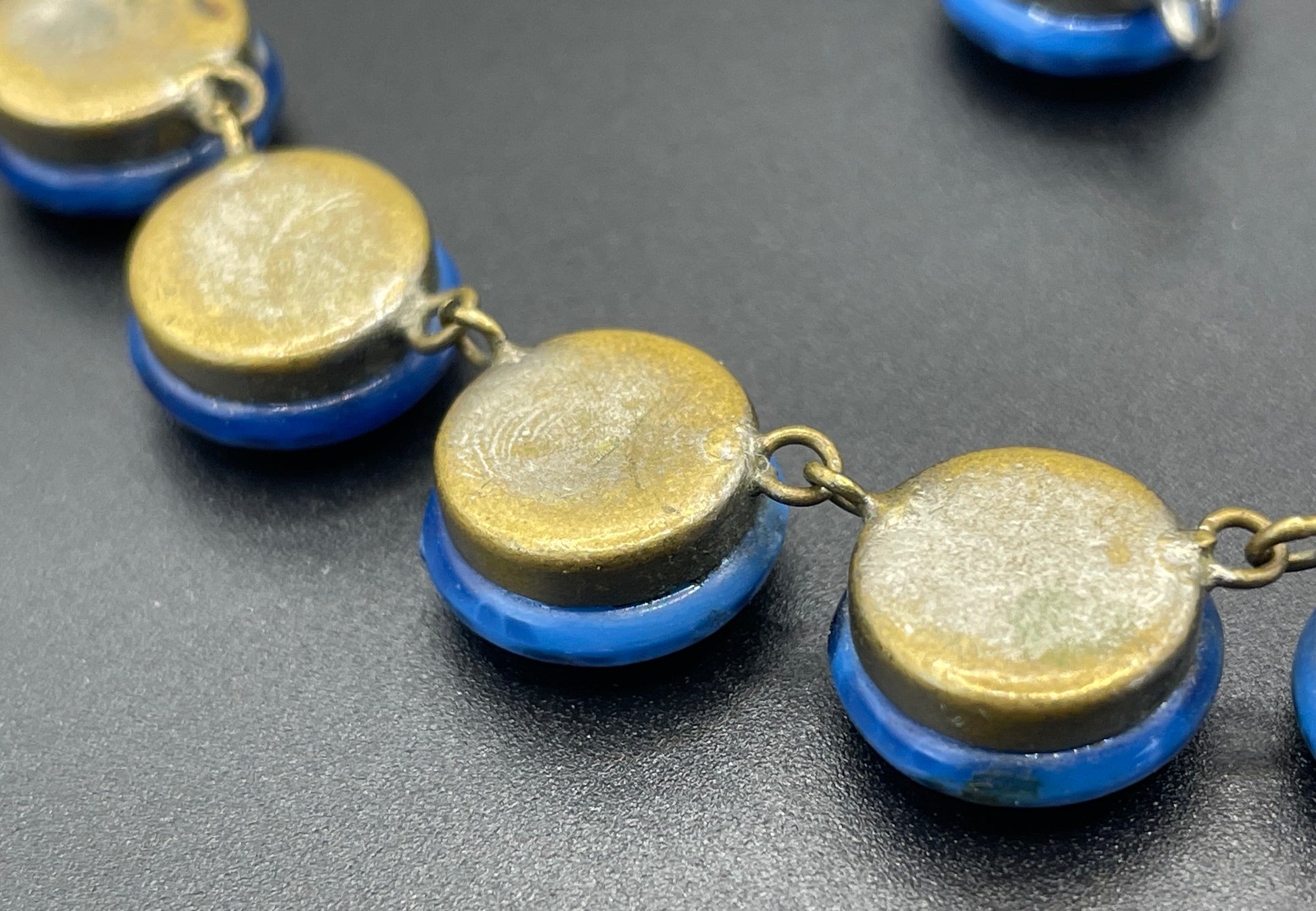 Vintage Art Deco bright blue glass faux lapis lazuli cabochon riviere necklace
