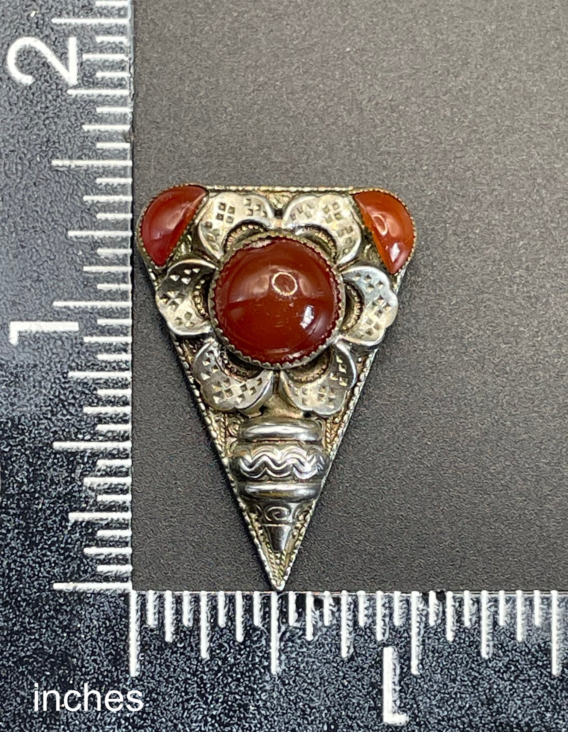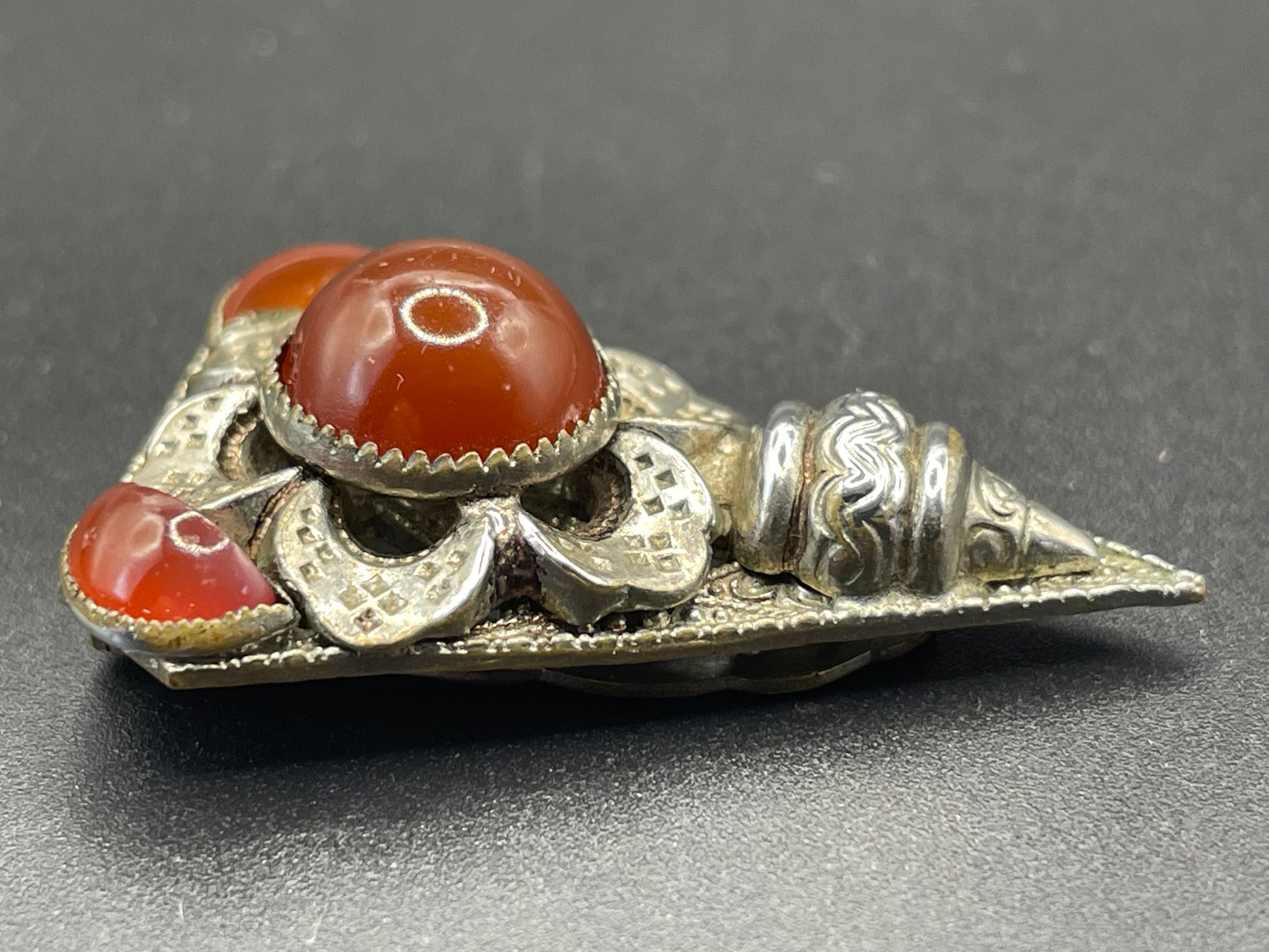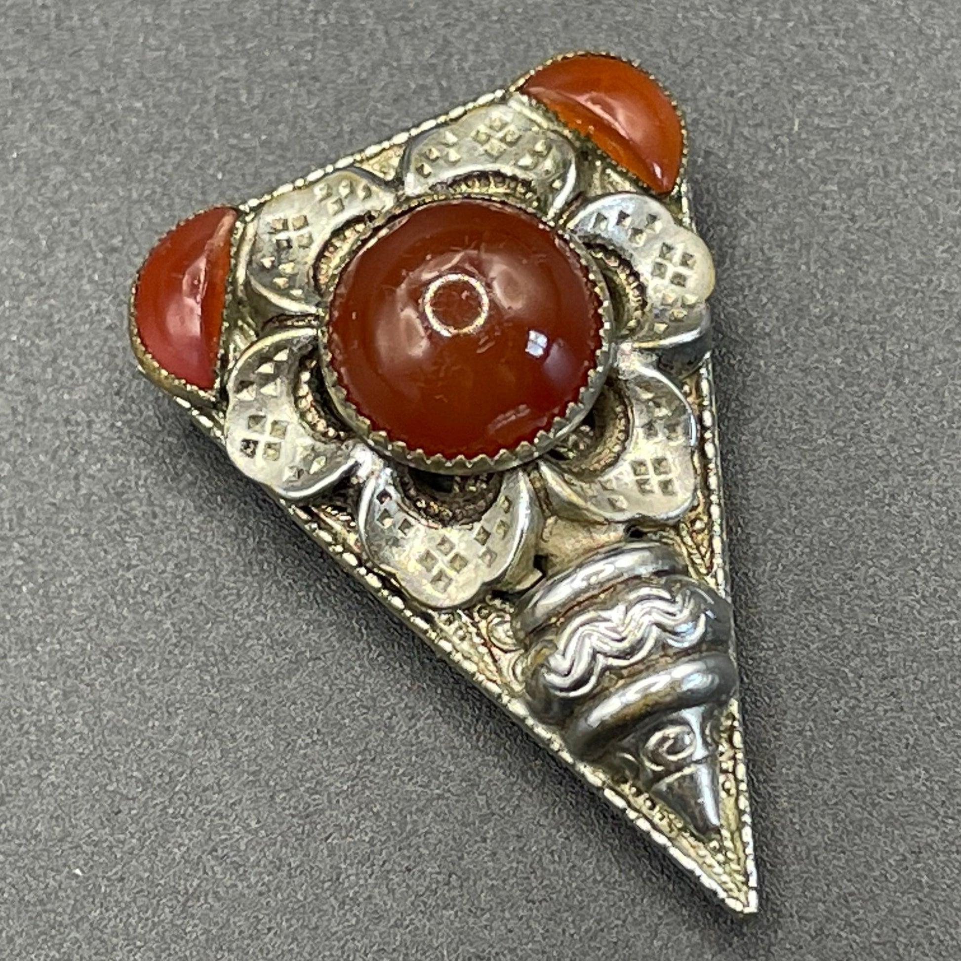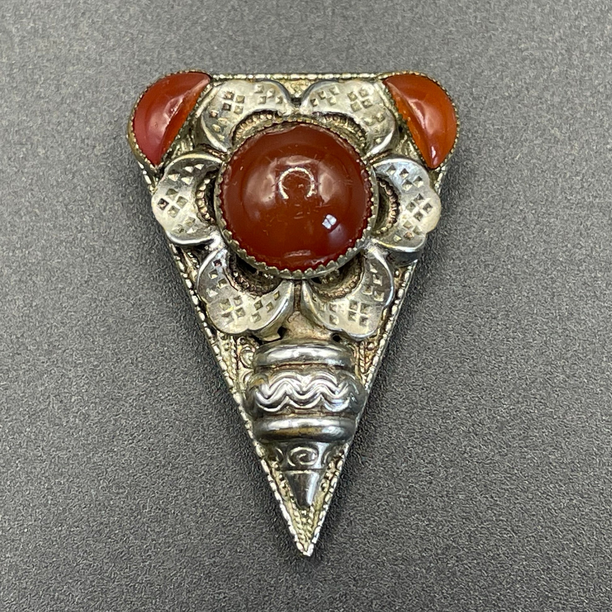 Vintage Art Deco Czech Neiger Brothers, Max Neiger faux carnelian glass cabochon and silver tone dress clip, beautiful deep orange colour