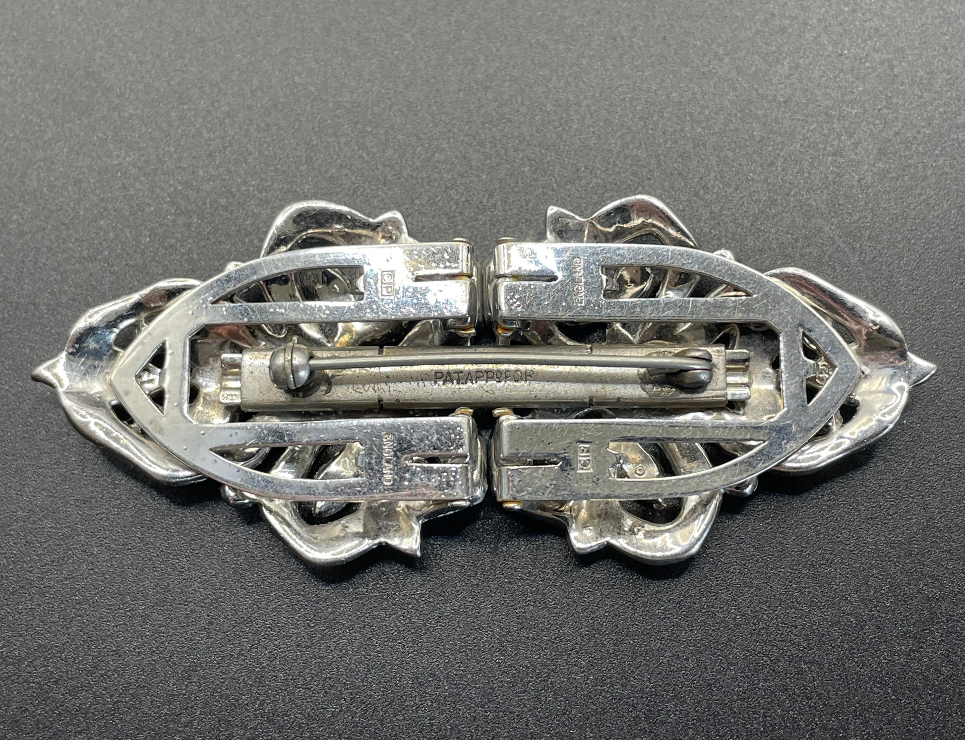 Vintage Art Deco rhinestone duette, brooch that is convertible into two dress clips, metamorphic jewellery, Ciro Pearls, made by Trifari