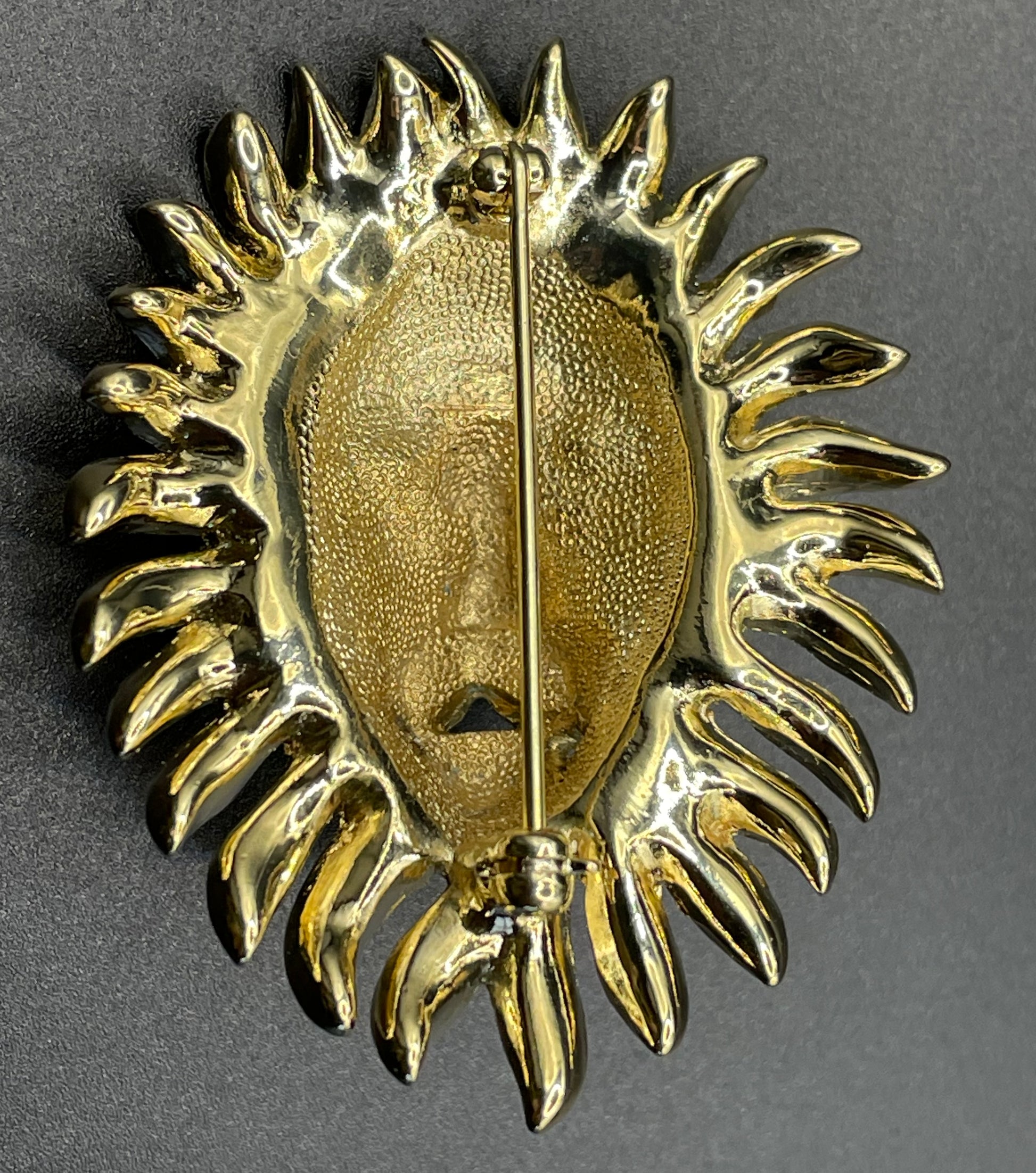 This striking piece is a well known example from these top quality makers. They have either very pale yellow rhinestones or clear rhinestones across the whole face and mane with various colours of rhinestone eyes (I believe other colour combinations were made and can often be found). It is signed A&S on the reverse but please note this stamping seems rubbed and is quite faint, as pictured.