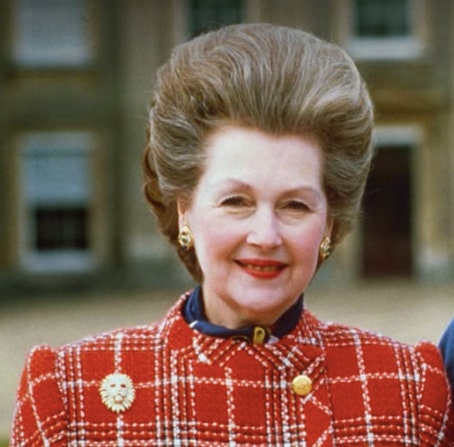 The last picture shows Princess Diana's stepmother Raine Spencer sporting one of this line of brooches outside Diana's family home of Althorp in the 1980s.