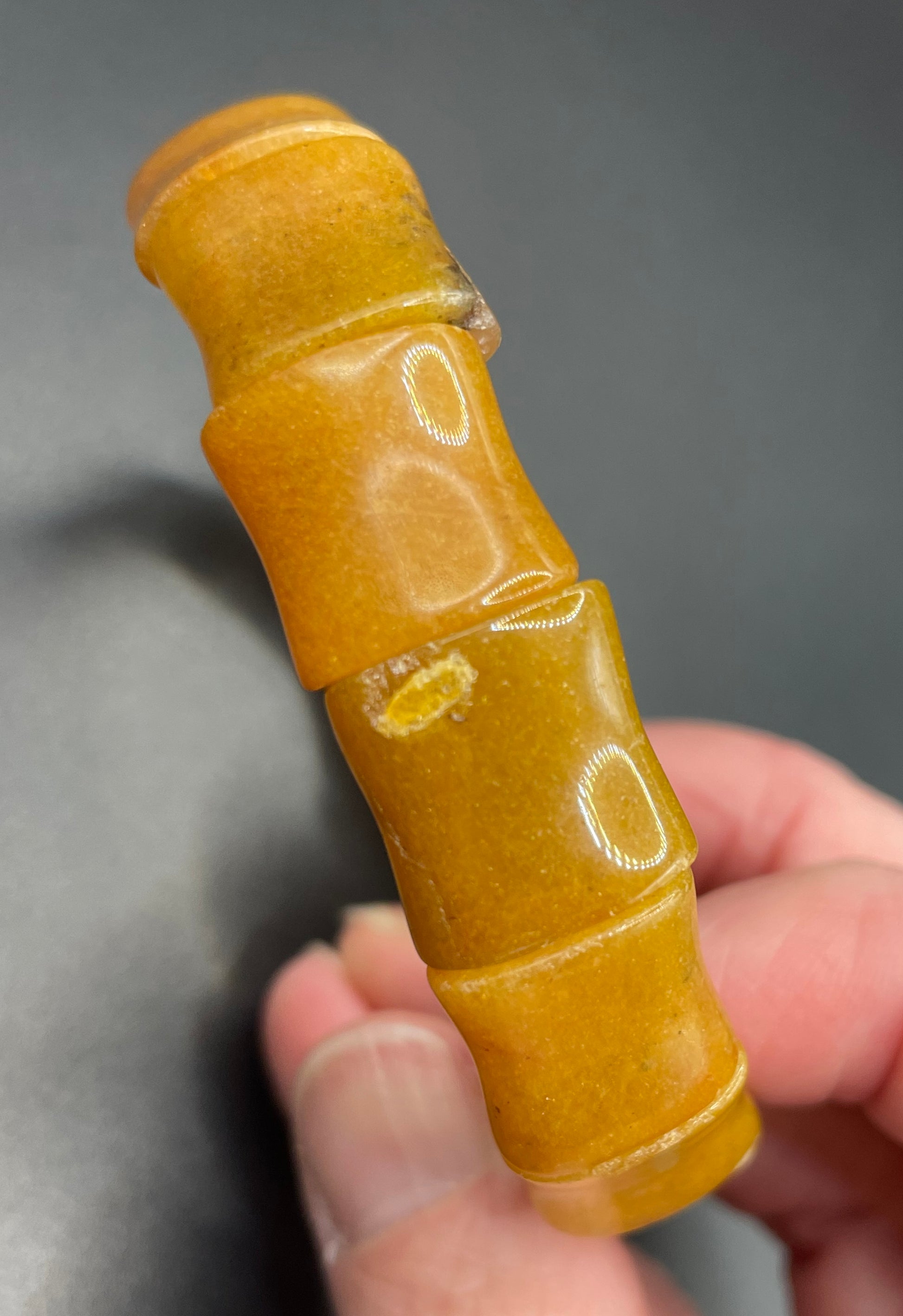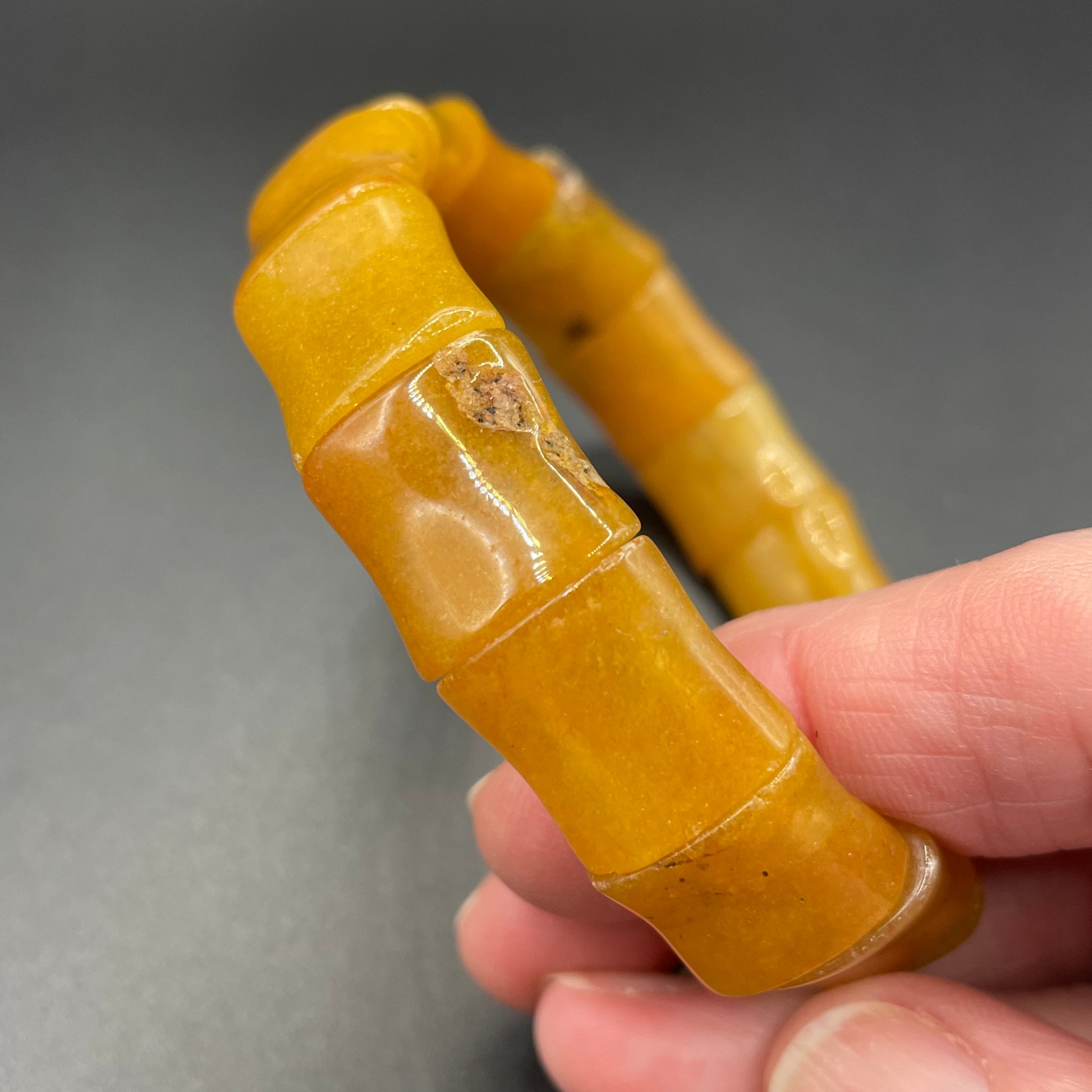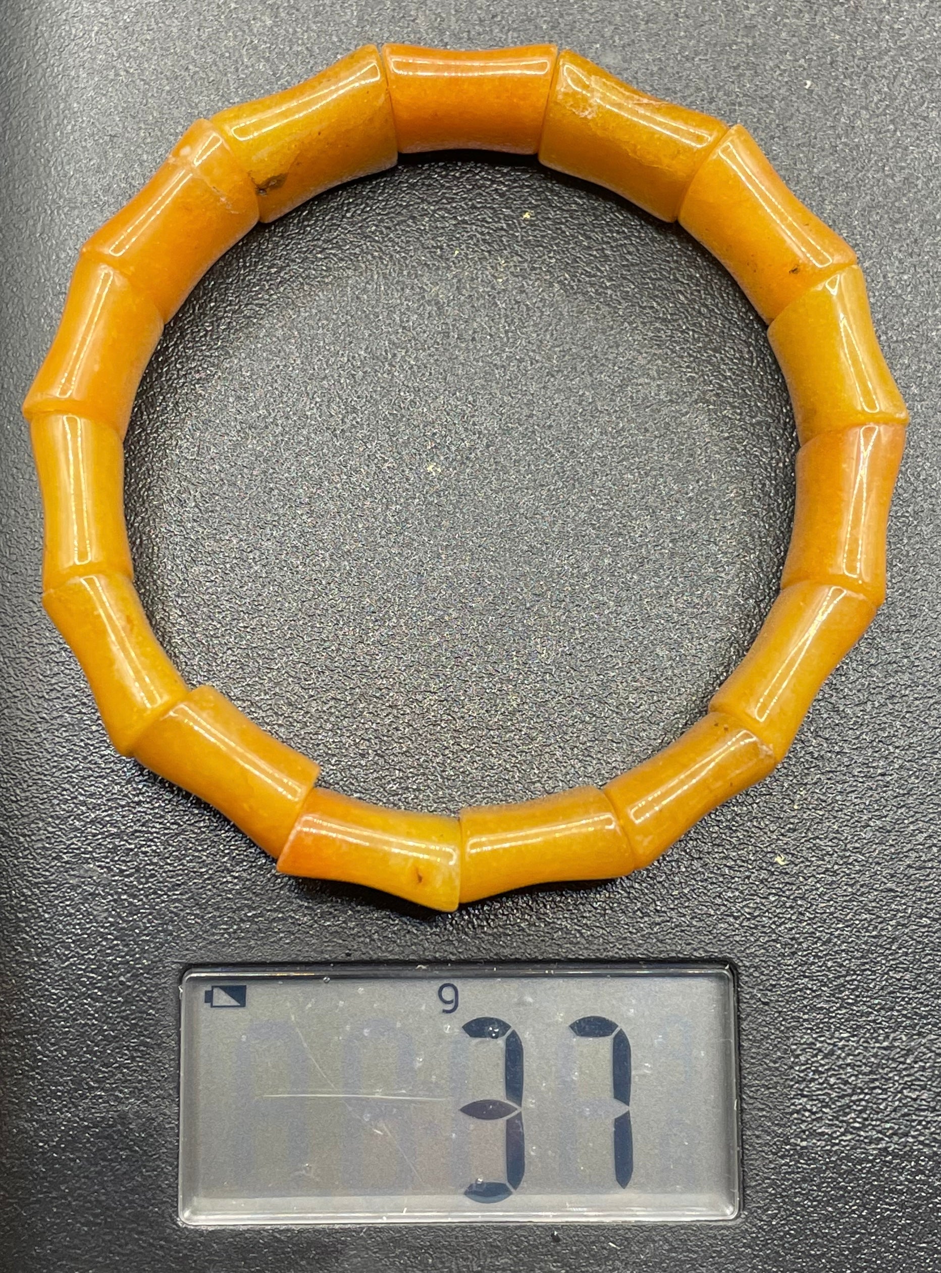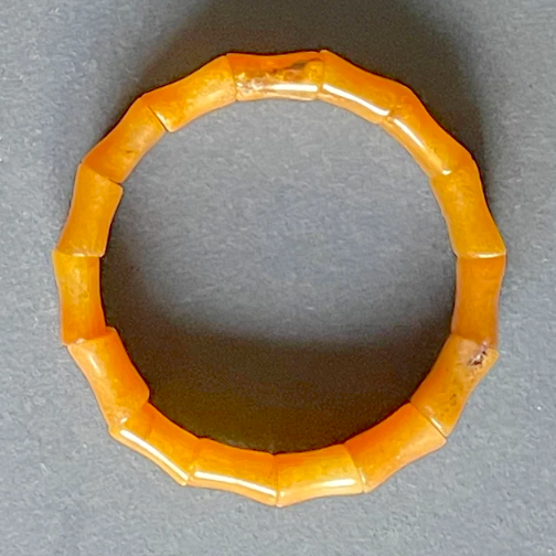 Vintage butterscotch amber beaded stretch bracelet with stunning amber beads shaped in 'bamboo' style shapes.
