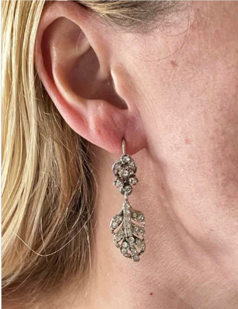 Choice of three pairs of vintage dangle earrings for pierced ears as pictured. Please select the pair to be purchased using the drop-down menu. Earrings 1 and 2 have ear hooks, whereas pair 3 has butterfly backs. The earrings are all in good vintage condition.