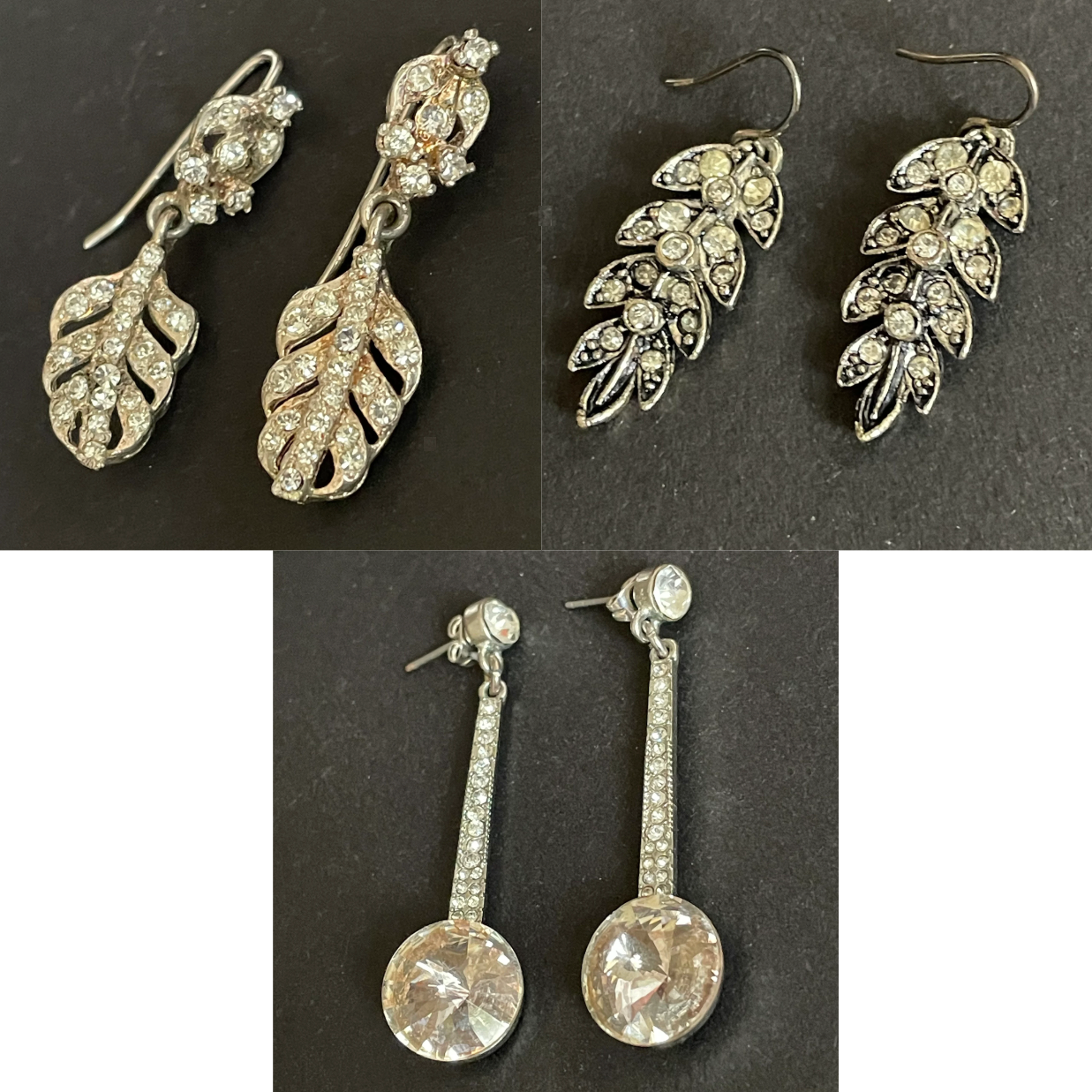 Vintage choice of pairs of clear rhinestone paste and silver tone statement earrings for pierced ears