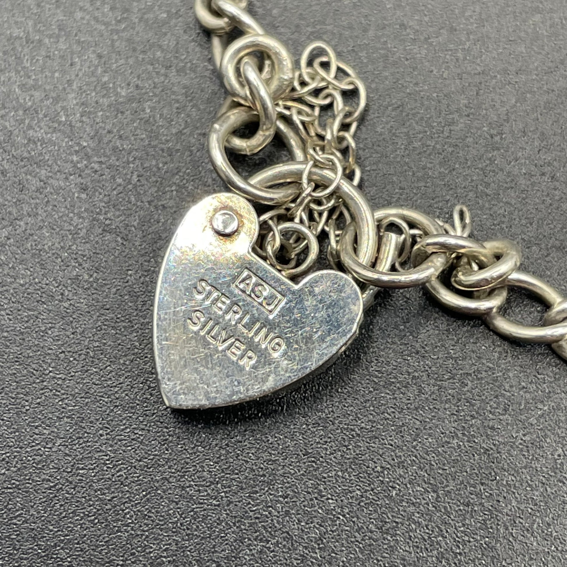 The length of the bracelet is about 7.5 inches and it fastens with a traditional sterling silver padlock clasp, with a fixed safety chain for extra security against loss. The padlock is stamped ASJ sterling silver on the reverse. The whole pieces weighs about 25 grams.