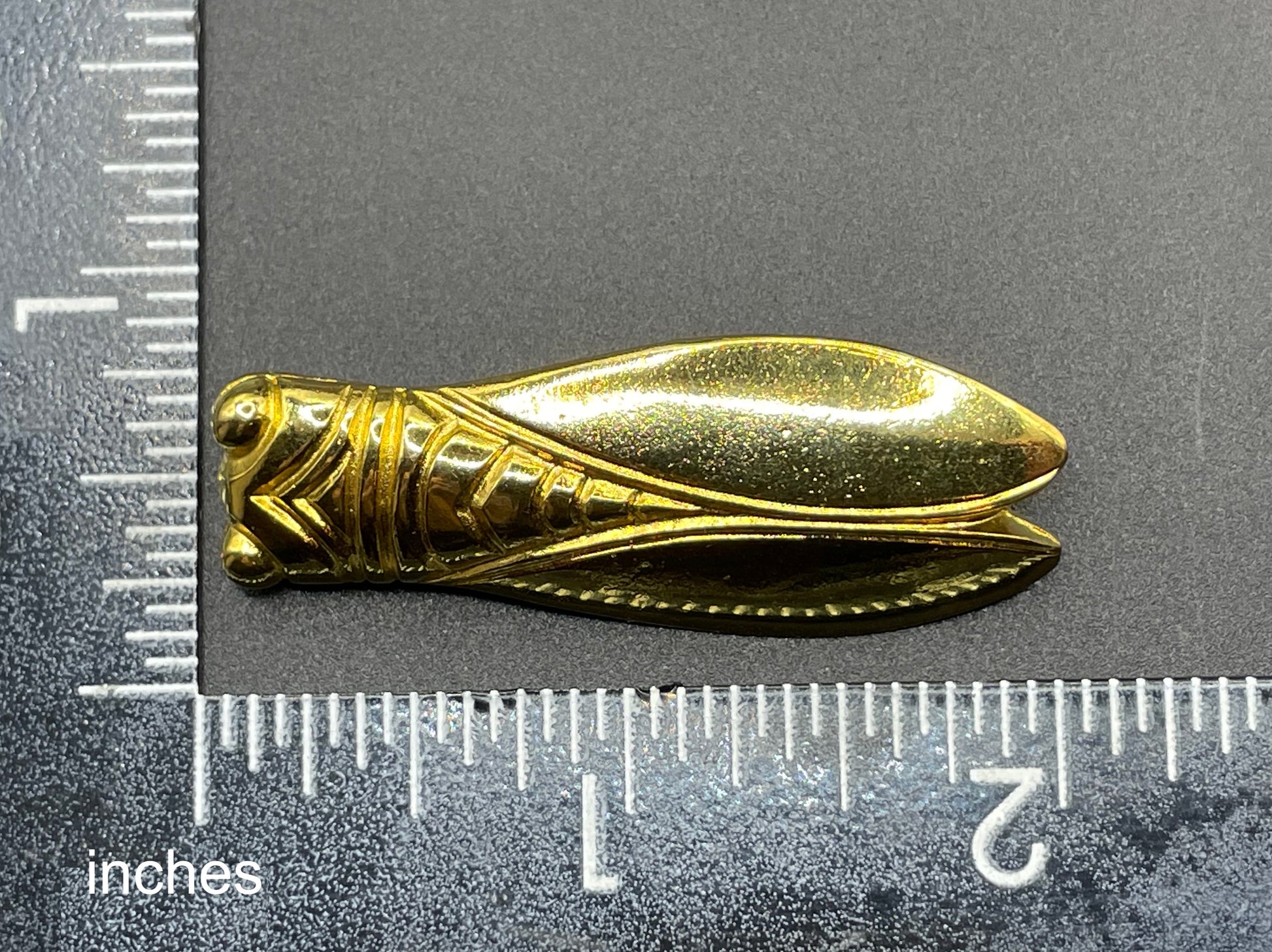 Vintage gold tone cicada brooch, signed Les Olivades, Egyptian revival