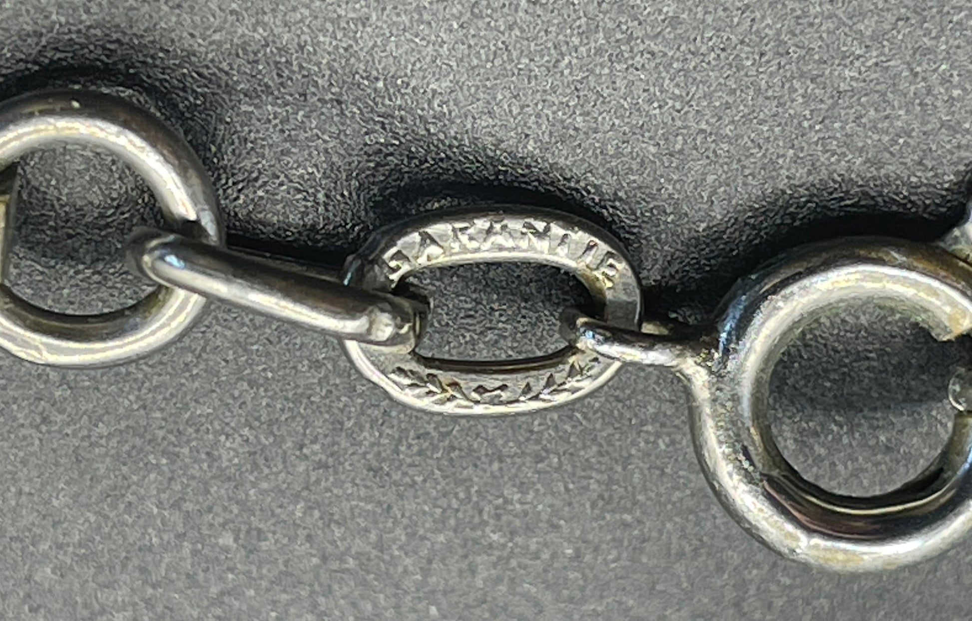 This piece has a length of about 17 inches and it fastens with a secure spring ring clasp. One of the jump rings near the clasp has the word 'guarantie' stamped on it - this is often found in Bengel pieces, perhaps because the pieces were due to go on sale in France, or perhaps just to sound more chic!