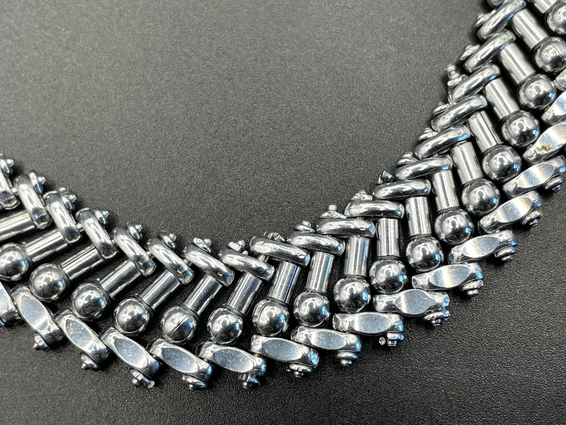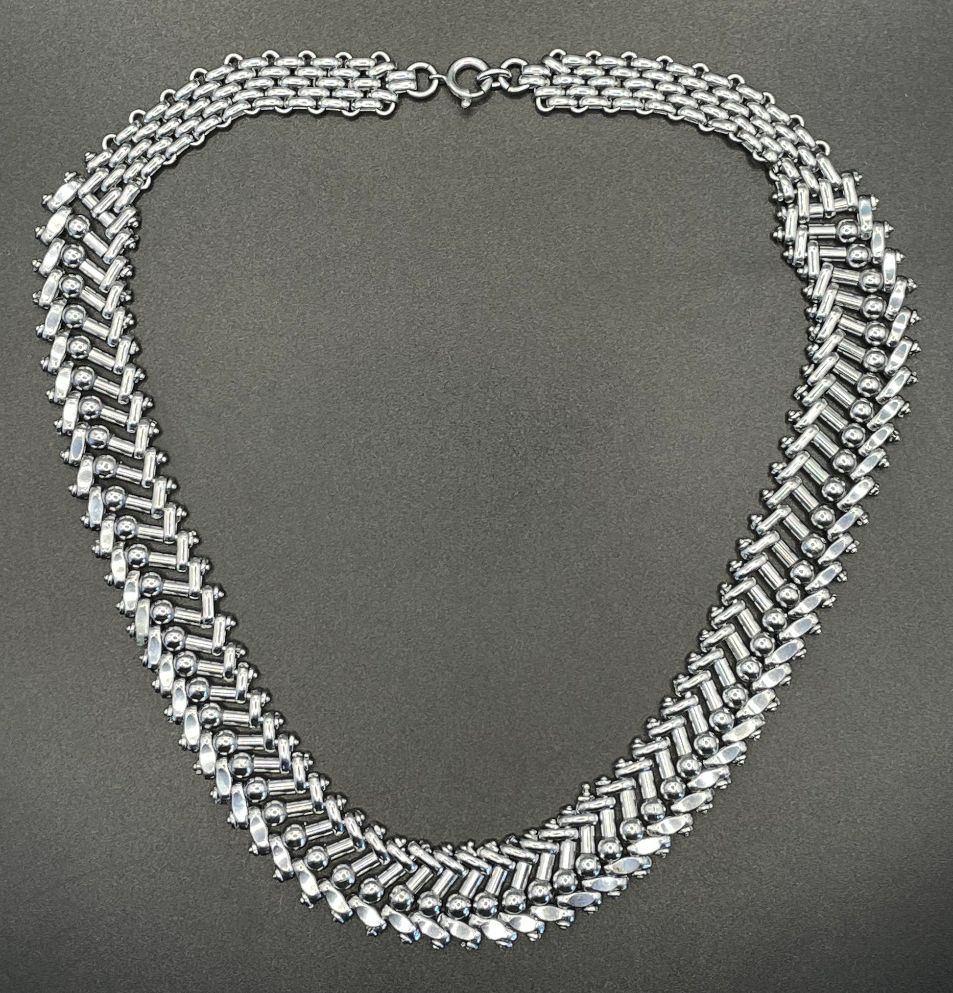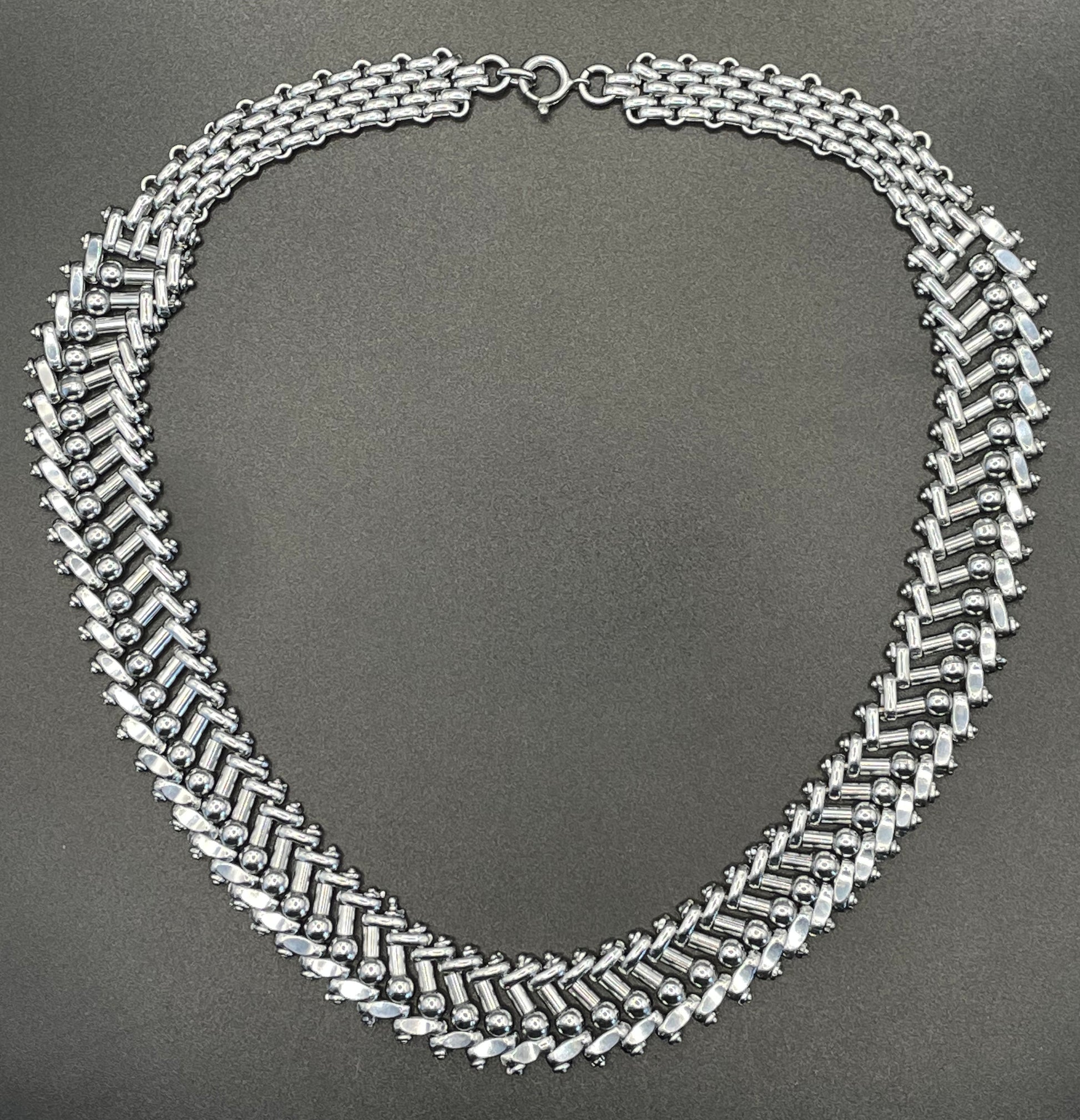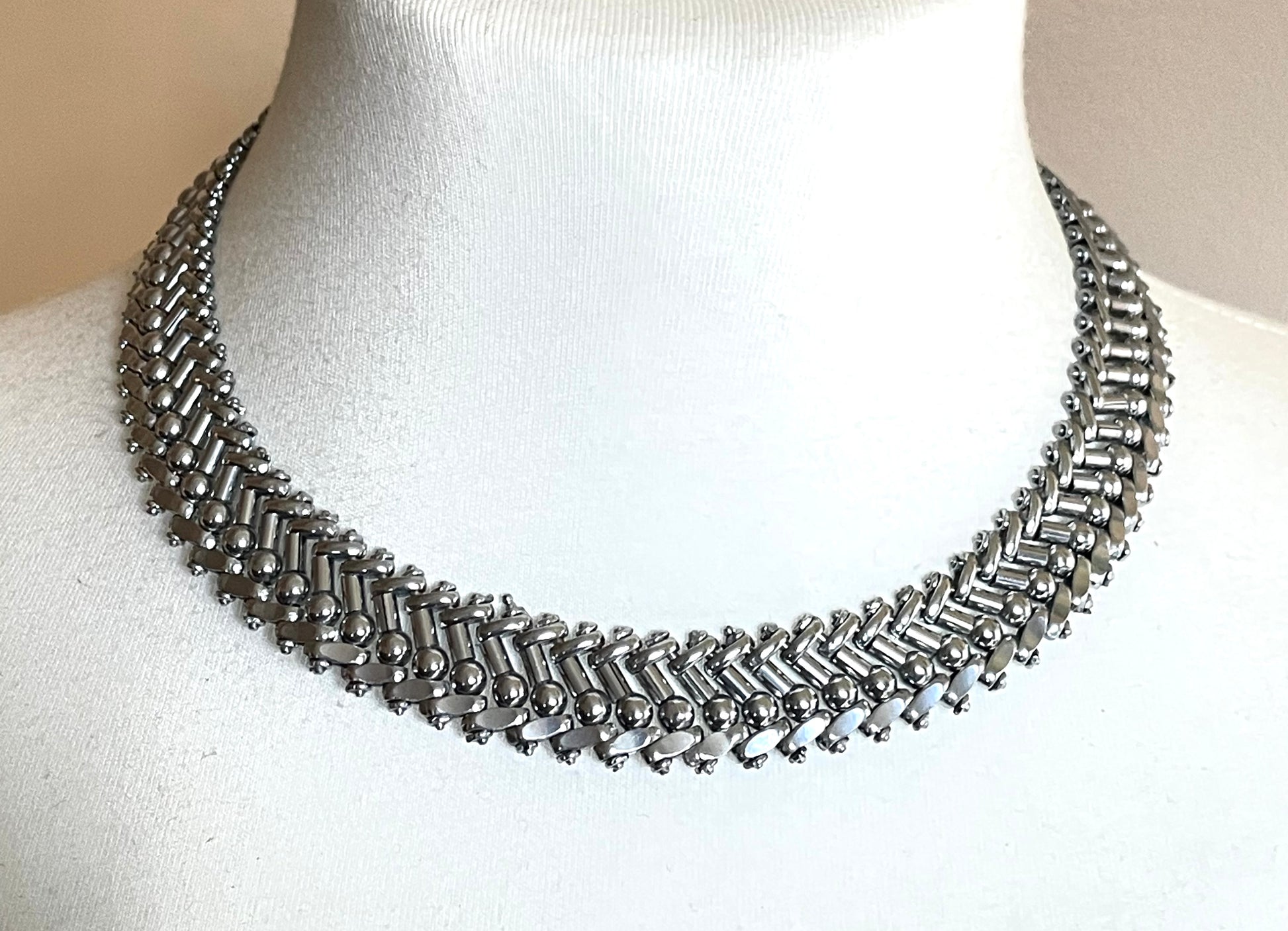 Vintage Jakob Bengel Art Deco brickwork / mauerwerk machine age chrome choker necklace, unusual design, excellent condition