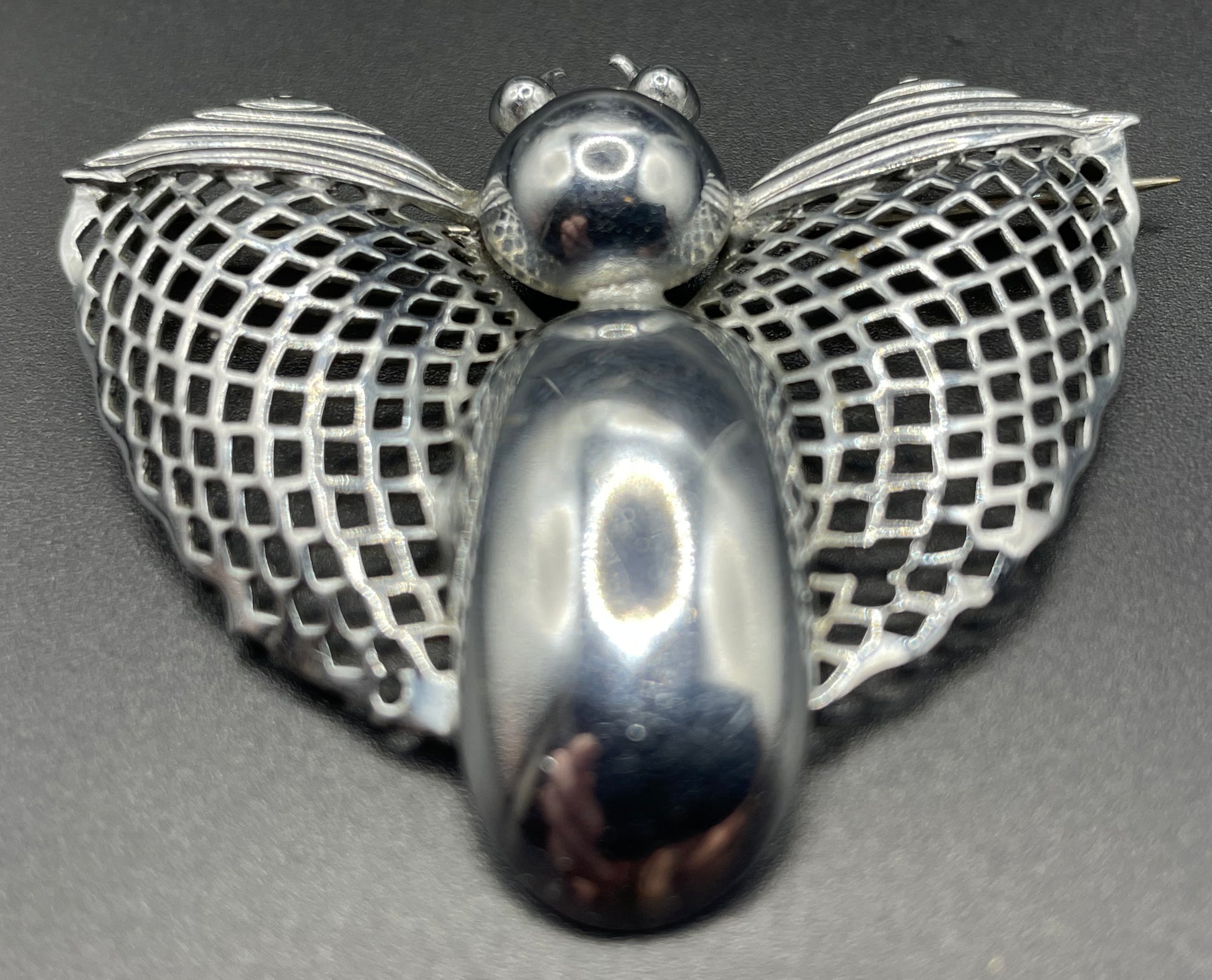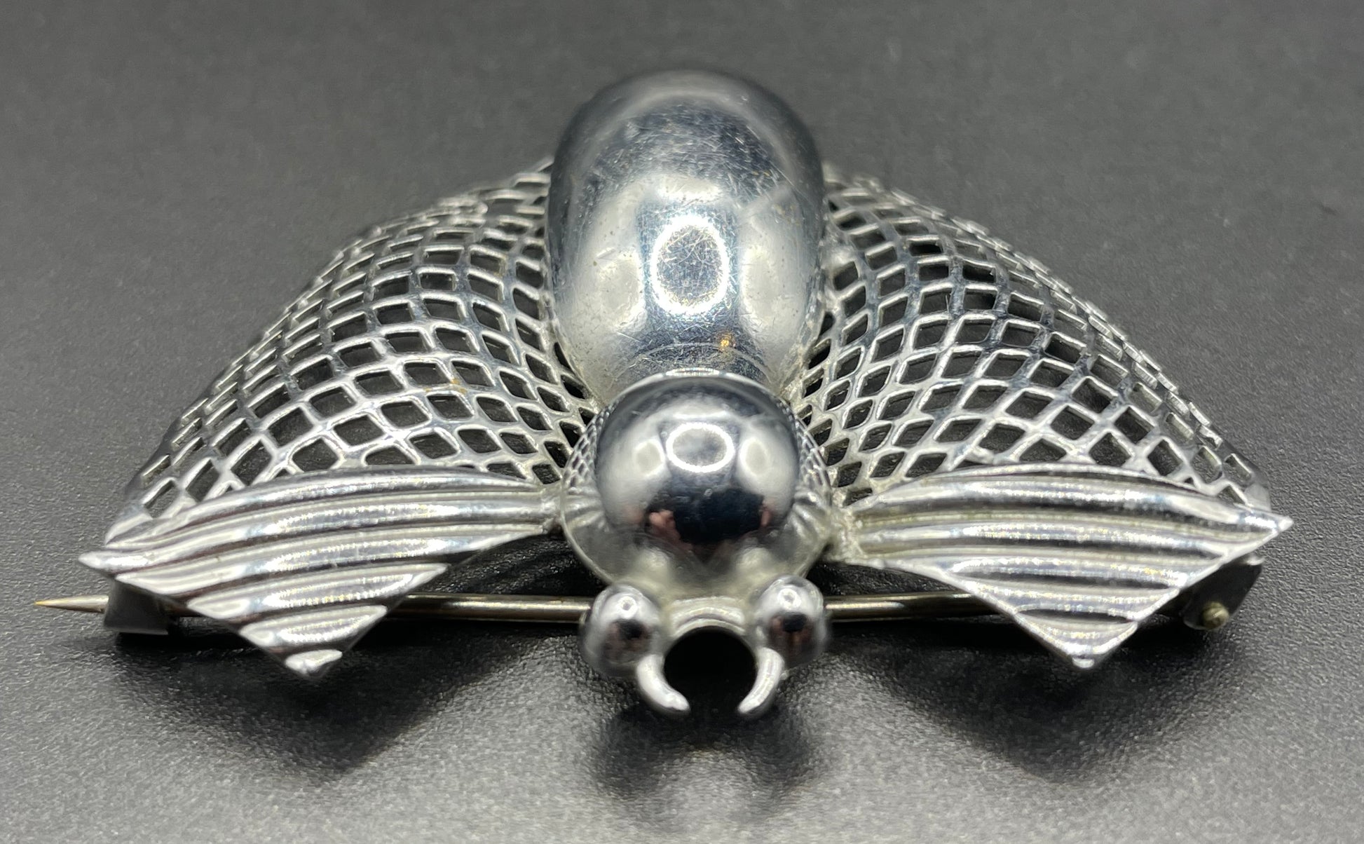 Vintage Art Deco machine age chrome stylised moth or butterfly bug brooch, 1930s