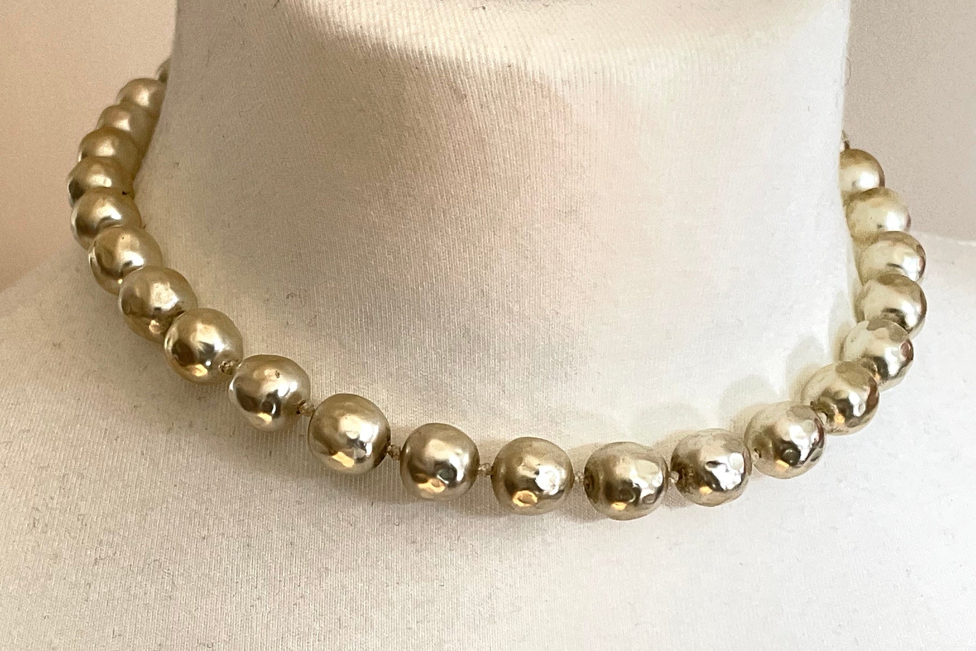 Vintage Louis Rousselet classic chic faux baroque pearl choker necklace, stunning cream coloured glass pearls individually hand-knotted