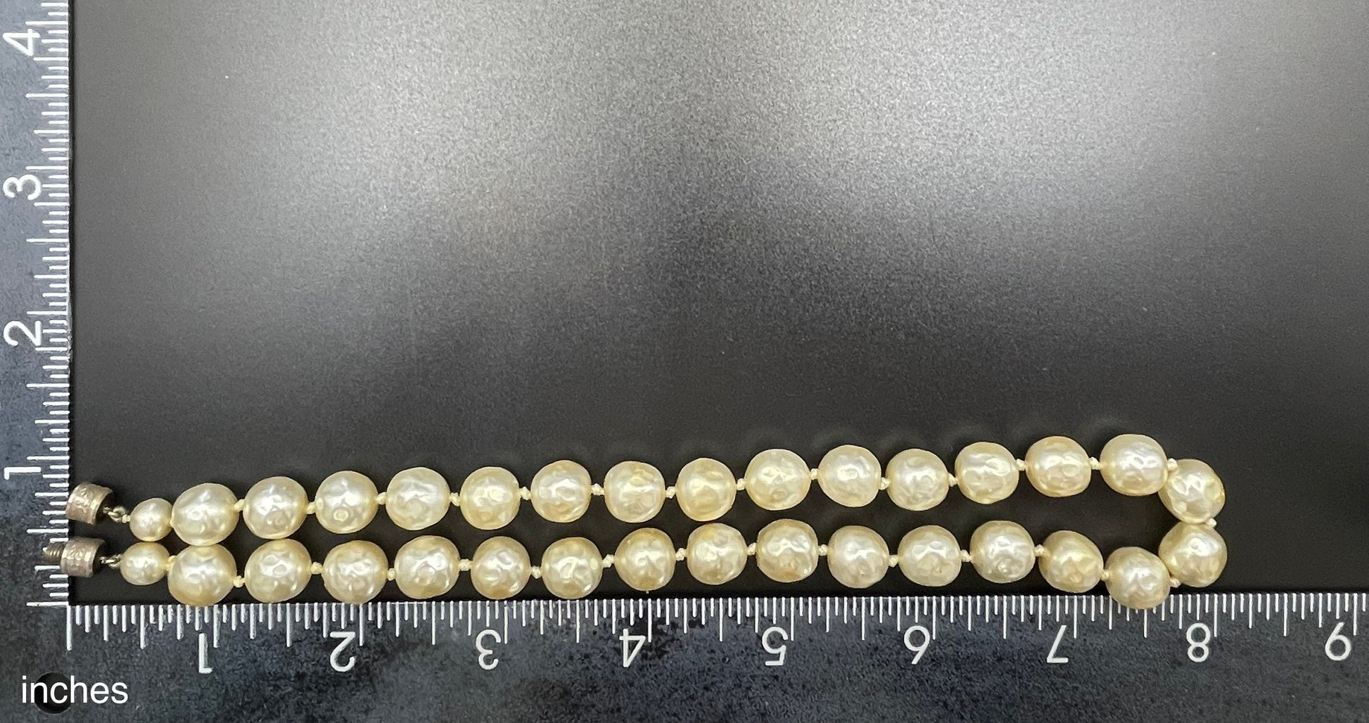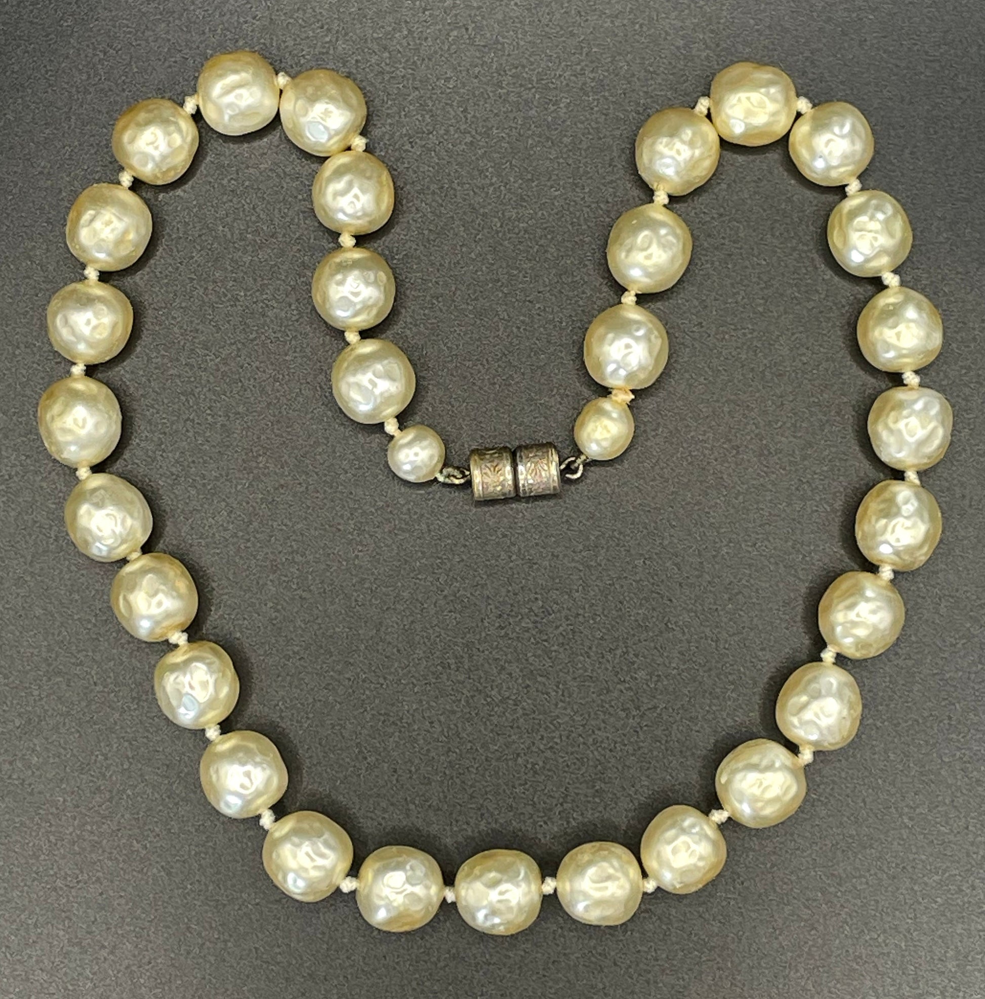 Classic and chic Louis Rousselet Art Deco glass baroque pearl beaded choker necklace. These are classic Rousselet beads, individually hand-knotted with an ornate Rousselet screw clasp. These Rousselet baroque glass faux pearls have such an amazing glow and sheen, it is hard to rival them, apart perhaps from those used in Miriam Haskell pieces!