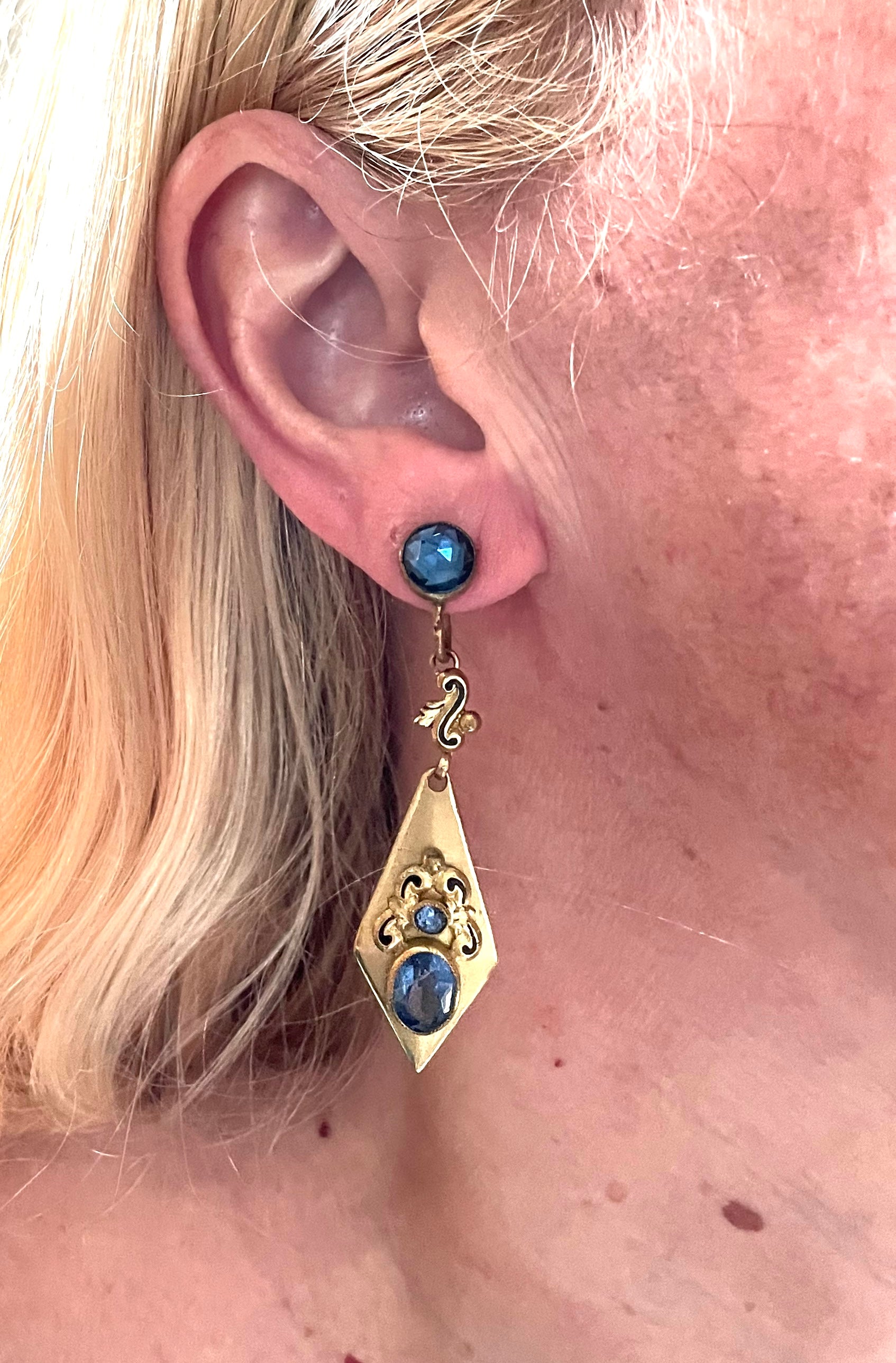 The necklace has a length of about 17 inches and fastens with a secure screw barrel clasp. The earrings are about 2 1/4 inches long and fasten with old style screw backs (so a piercing is not needed). The set is in very good vintage condition, please have a look at all the photos and close-ups.