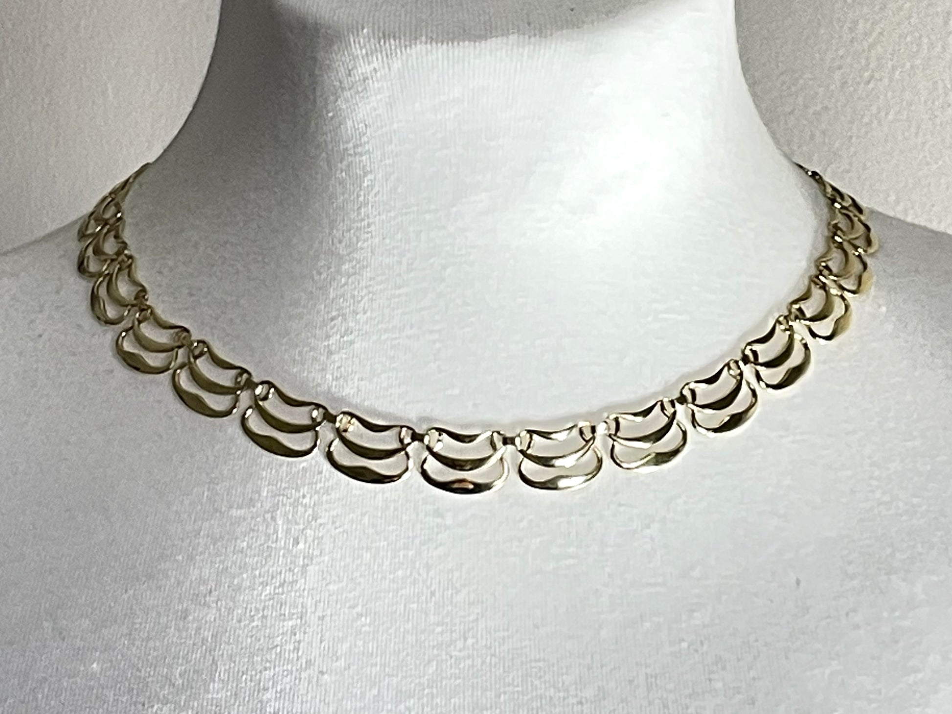 Vintage rolled gold Art Nouveau style abstract modernist design panel collar necklace