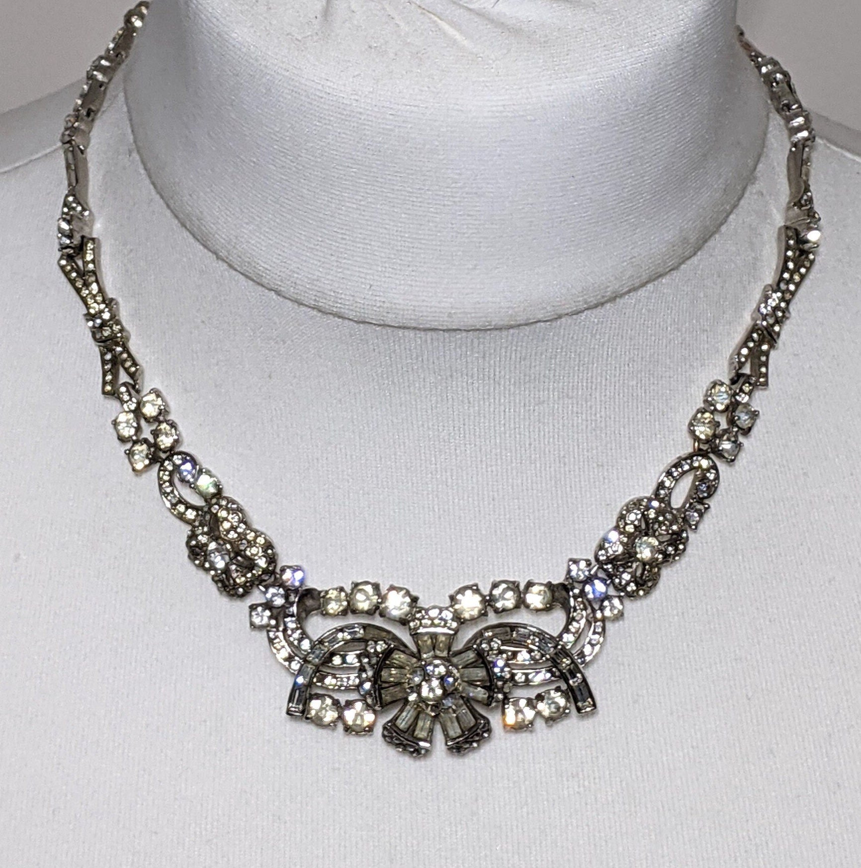 Vintage unsigned Attwood and Sawyer A&S baroque style, ornate rhinestone necklace, encrusted with clear rhinestones, fabulous quality 1980s