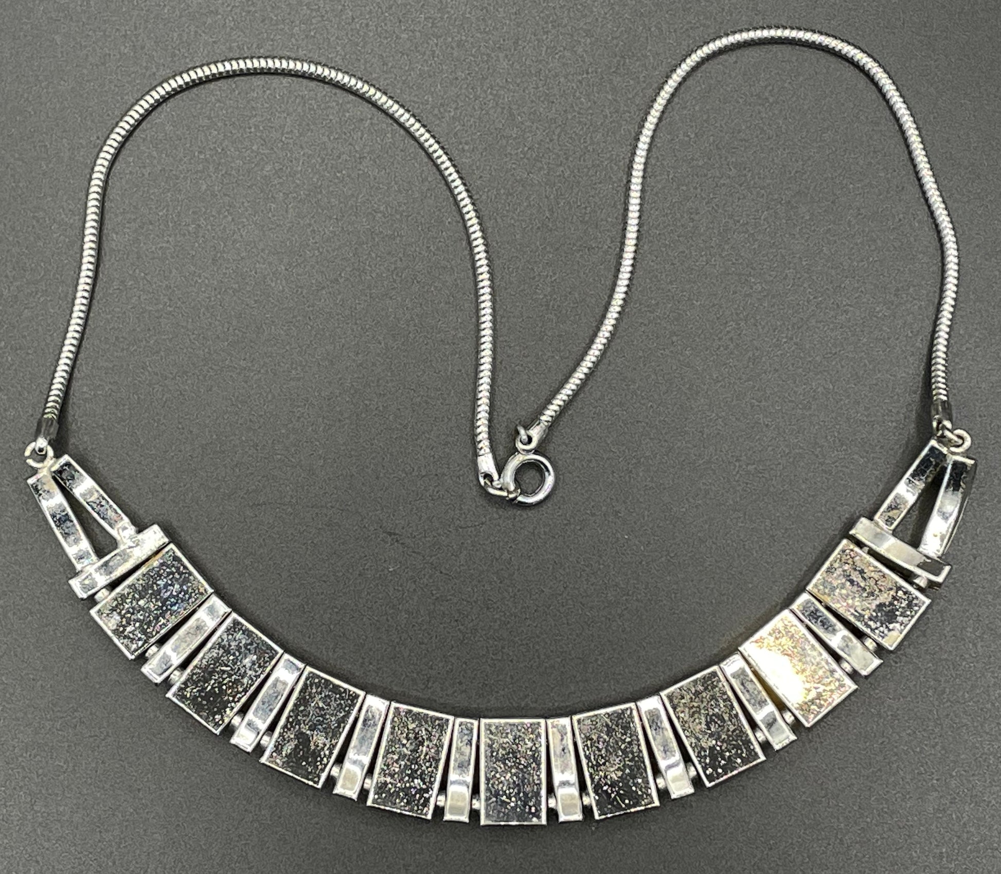 The necklace has a length of about 17 inches fastens with a secure spring ring clasp. It is in very good vintage condition - please examine photos carefully as this is an old piece and will have minor signs of having been worn, for example the chrome on the reverse of the silver tone.