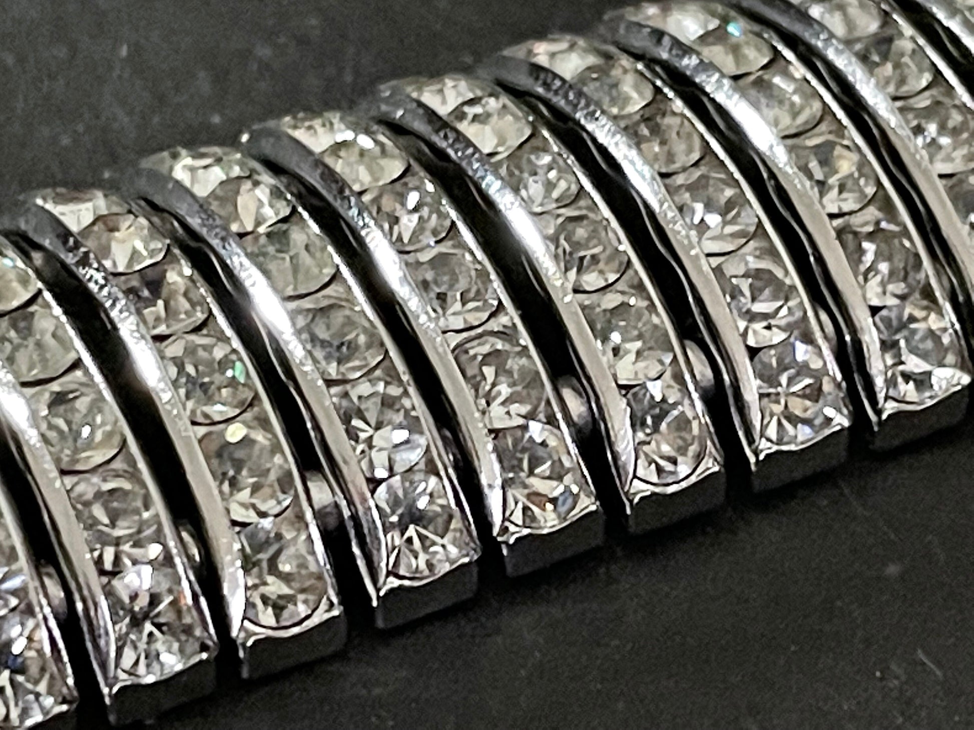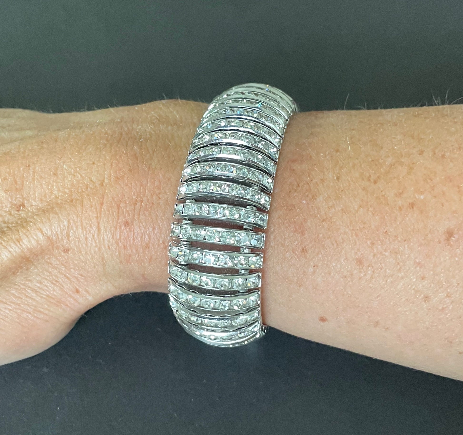 Vintage unsigned Schreiber & Hiller DRGM Art Deco channel set paste machine age cocktail wide cuff bracelet, very slim fitting