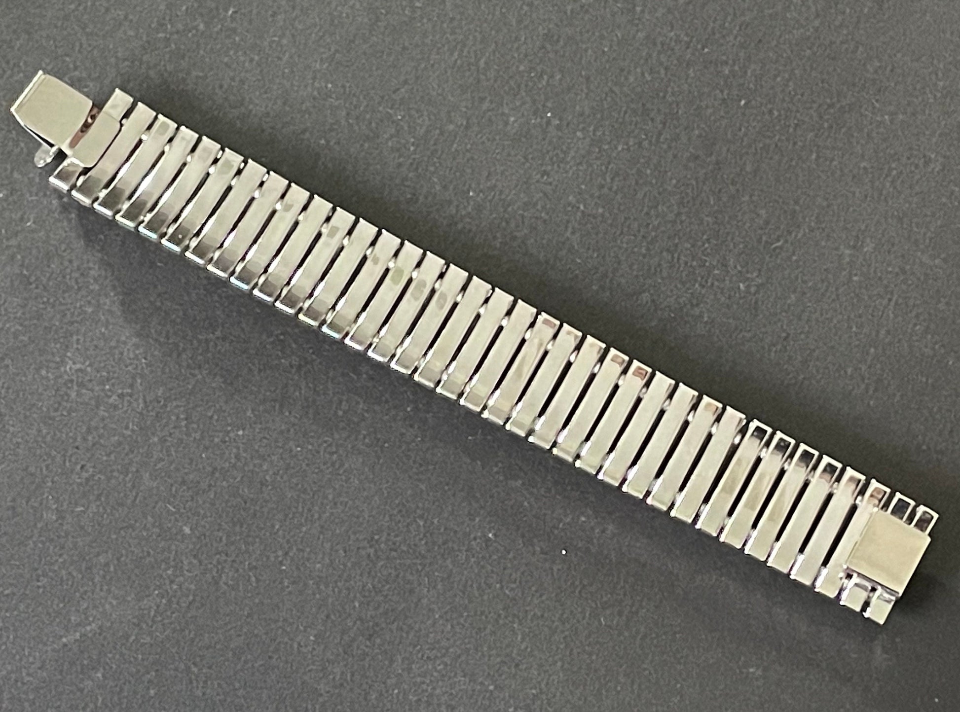 The bracelet length is very short at just over 6.5 inches, so please check wrist measurements carefully. It fastens with a hidden push-in box clasp. The bracelet is in excellent vintage condition - it really looks 'as-new' and unworn.